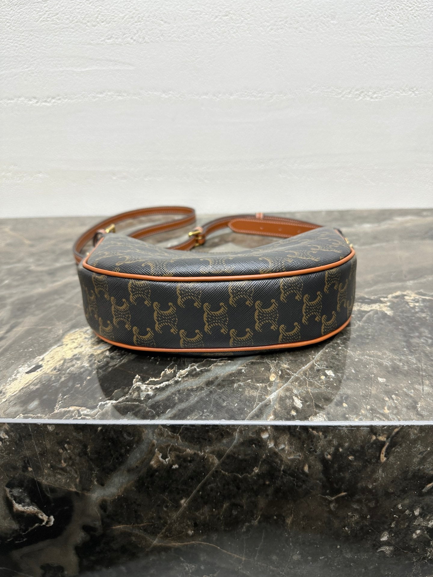 CELINE 25S TEEN LULU BAG 24 IN BLACK TRIOMPHE CANVAS AND BROWN CALFSKIN TRIM