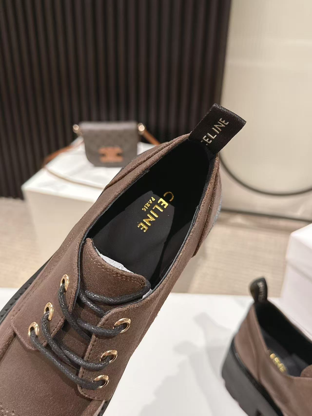 CELINE 25S THICK SOLED LOAFERS 50MM IN BROWN CALFSKIN