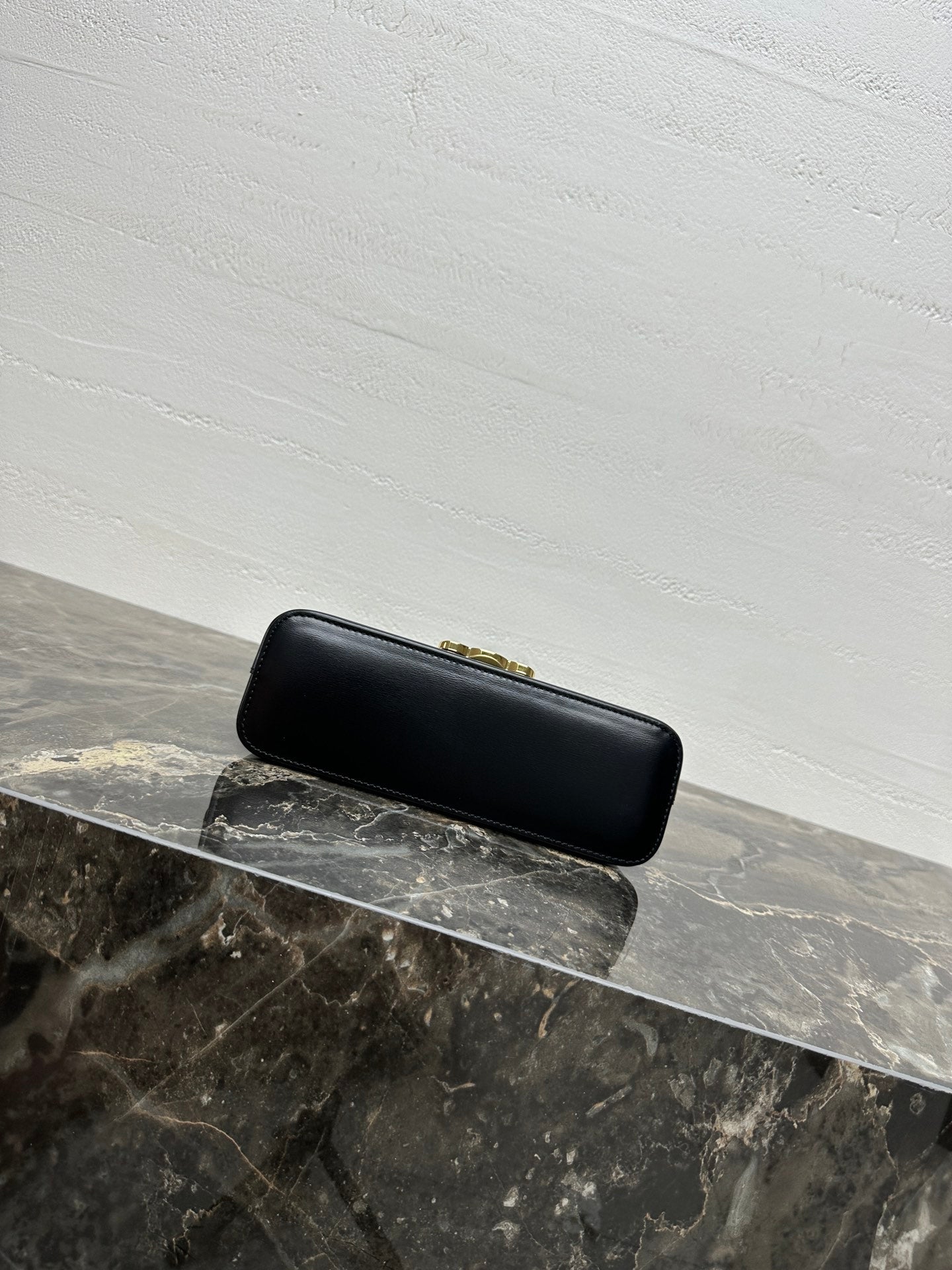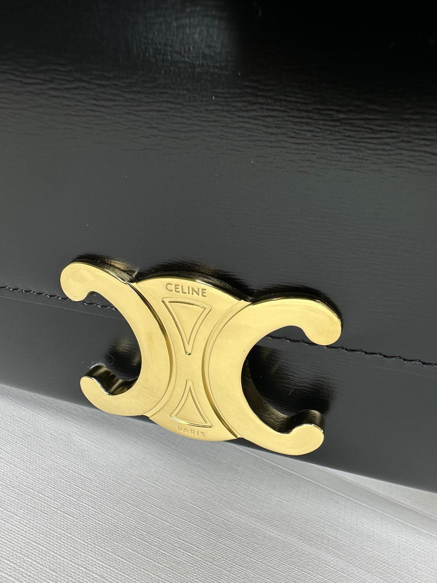 CELINE 25S TRIOMPHE BAG 24 IN BLACK SHINY CALFSKIN