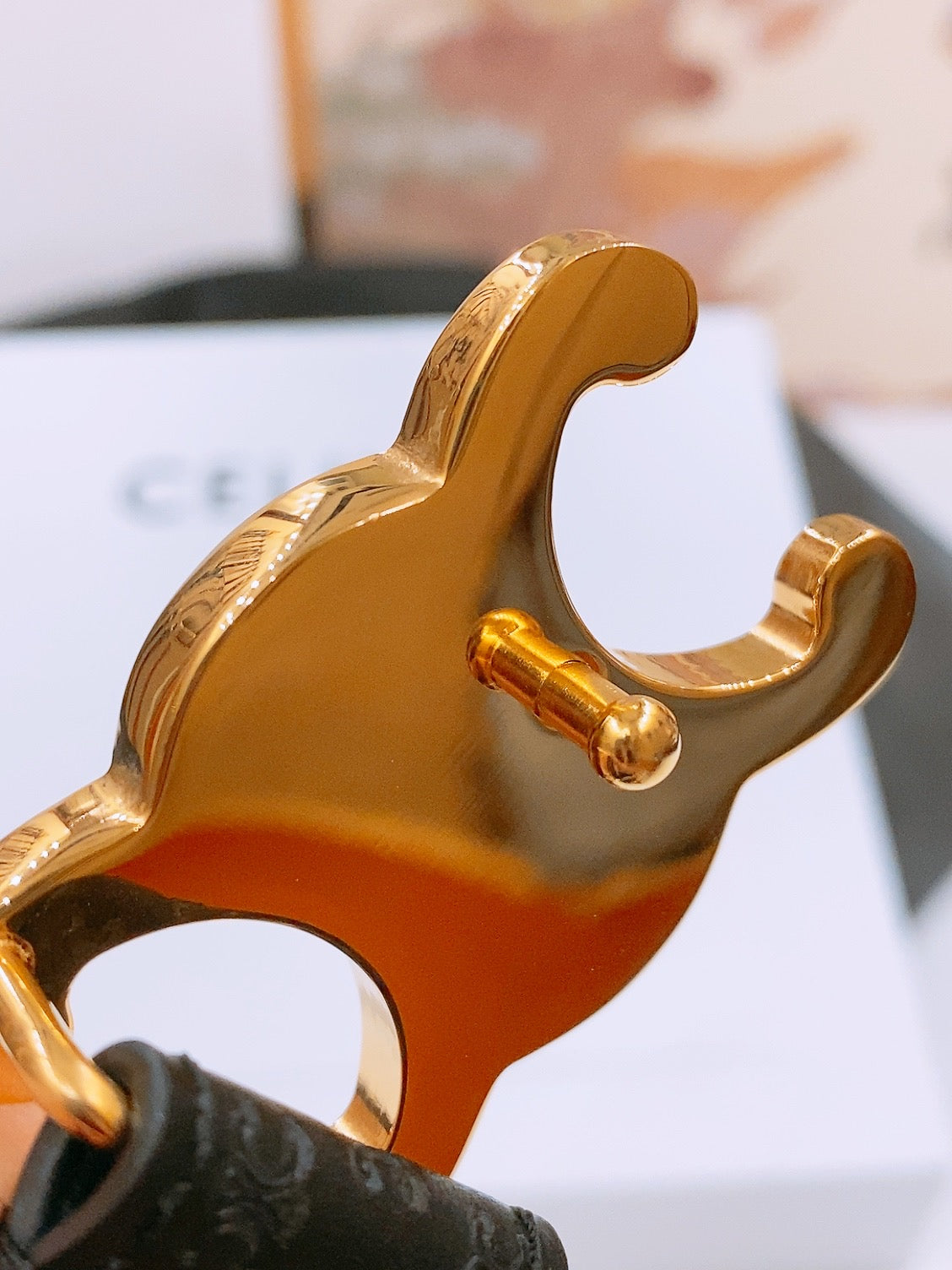 CELINE 25S TRIOMPHE BELT 25MM IN BLACK CALFSKIN DEBOSSED LOGO 570965
