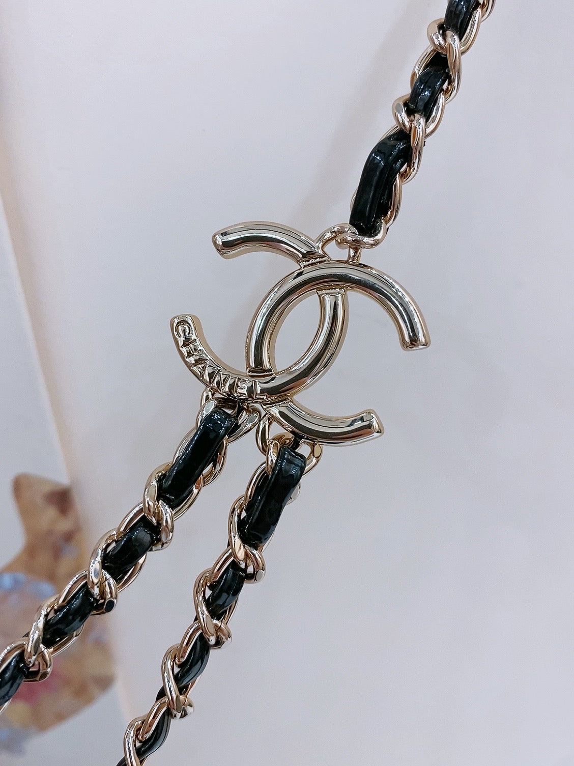 CHAIN BELT IN GOLD METAL INTERWOVEN WITH CALFSKIN STRAPS