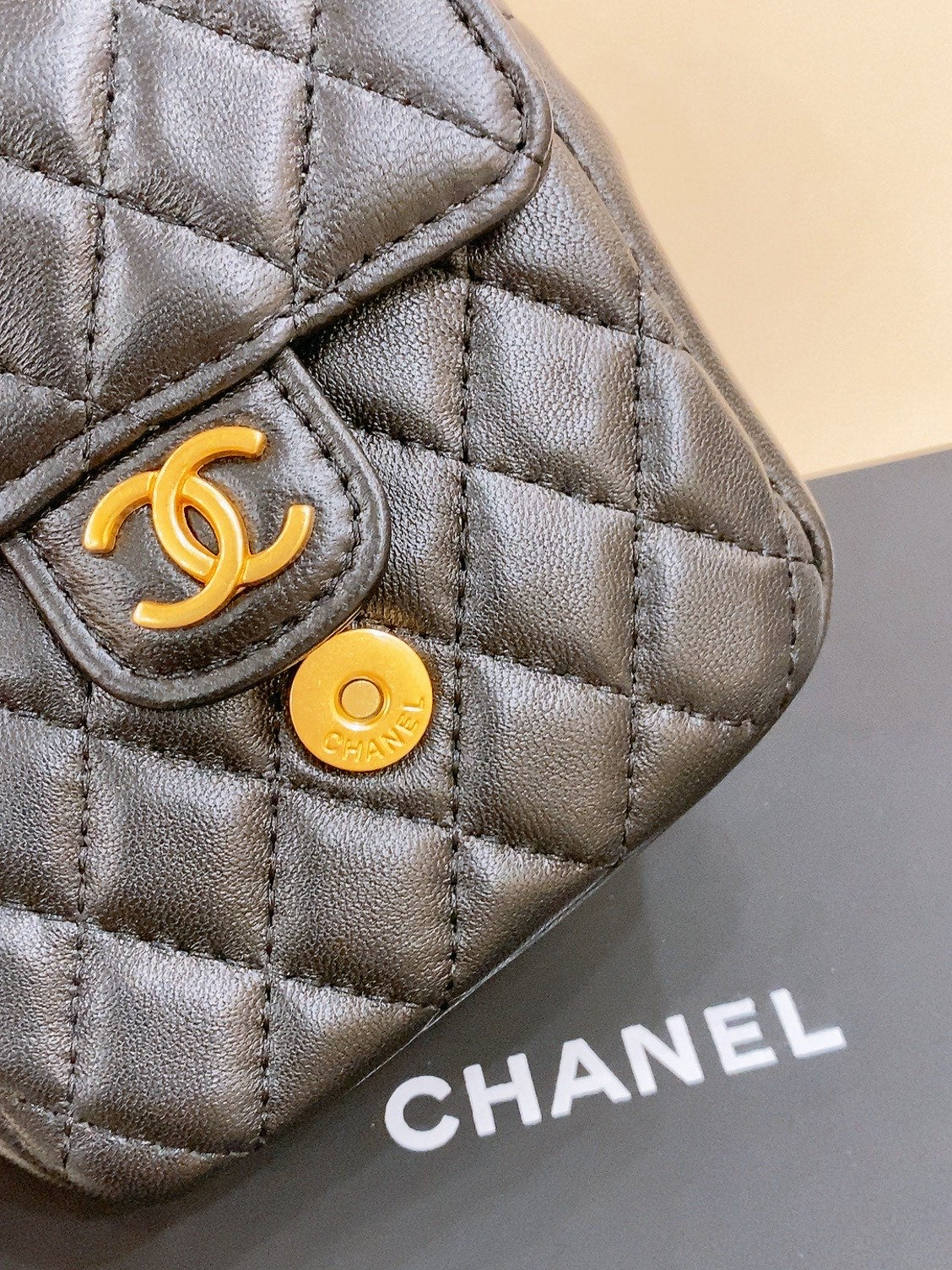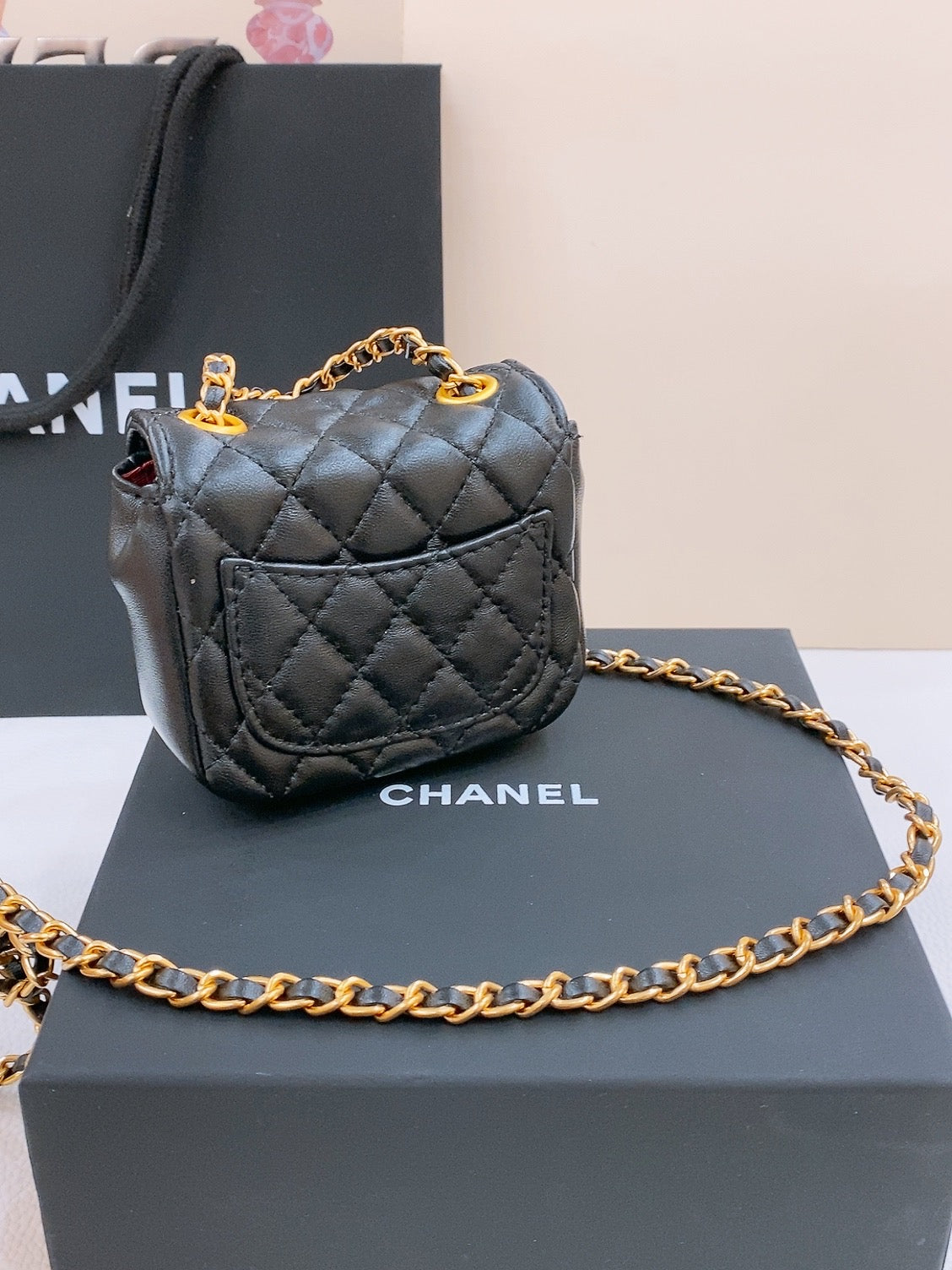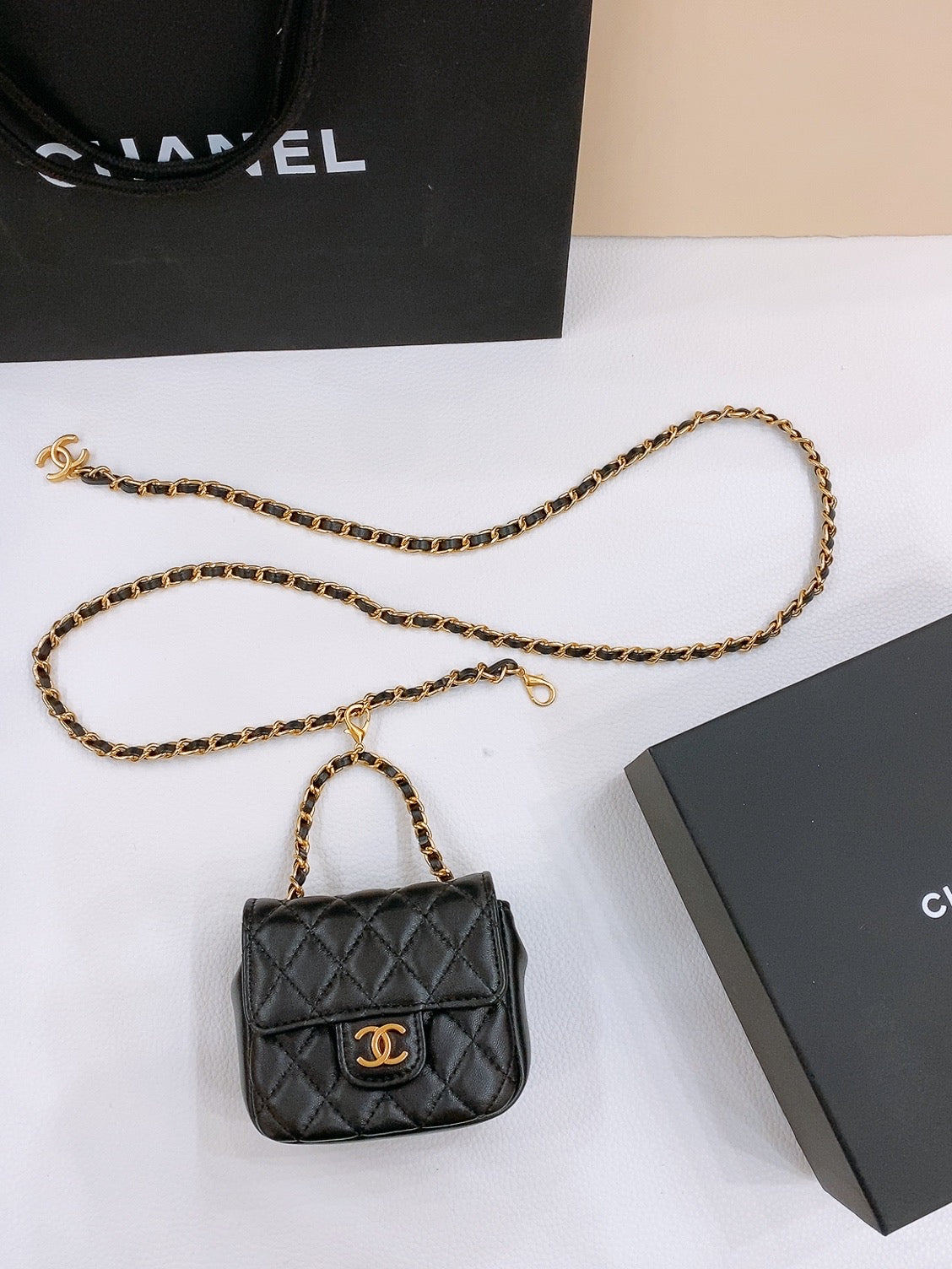 CHAIN BELT WITH GOLD METAL BLACK CALFSKIN INTERLINKING STRAPS AND MINI BAG
