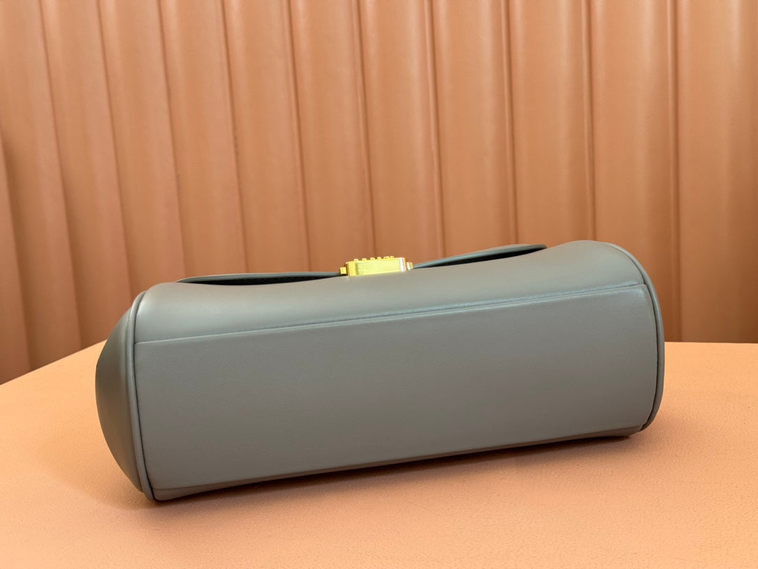 CHAIN SHOULDER BAG 24 IN SLATE GREY PATENT SMOOTH CALFSKIN
