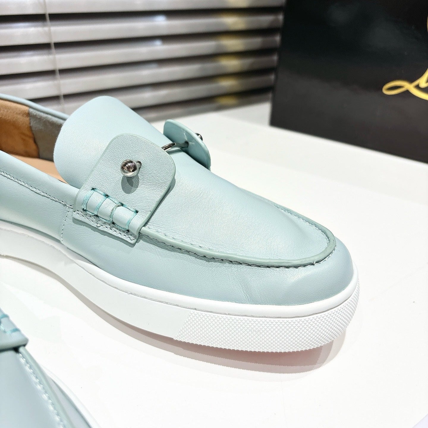 CHAMBELIBOAT REVERSED NUBUCK BOAT SHOES IN LIGHT BLUE SHINY CALFSKIN