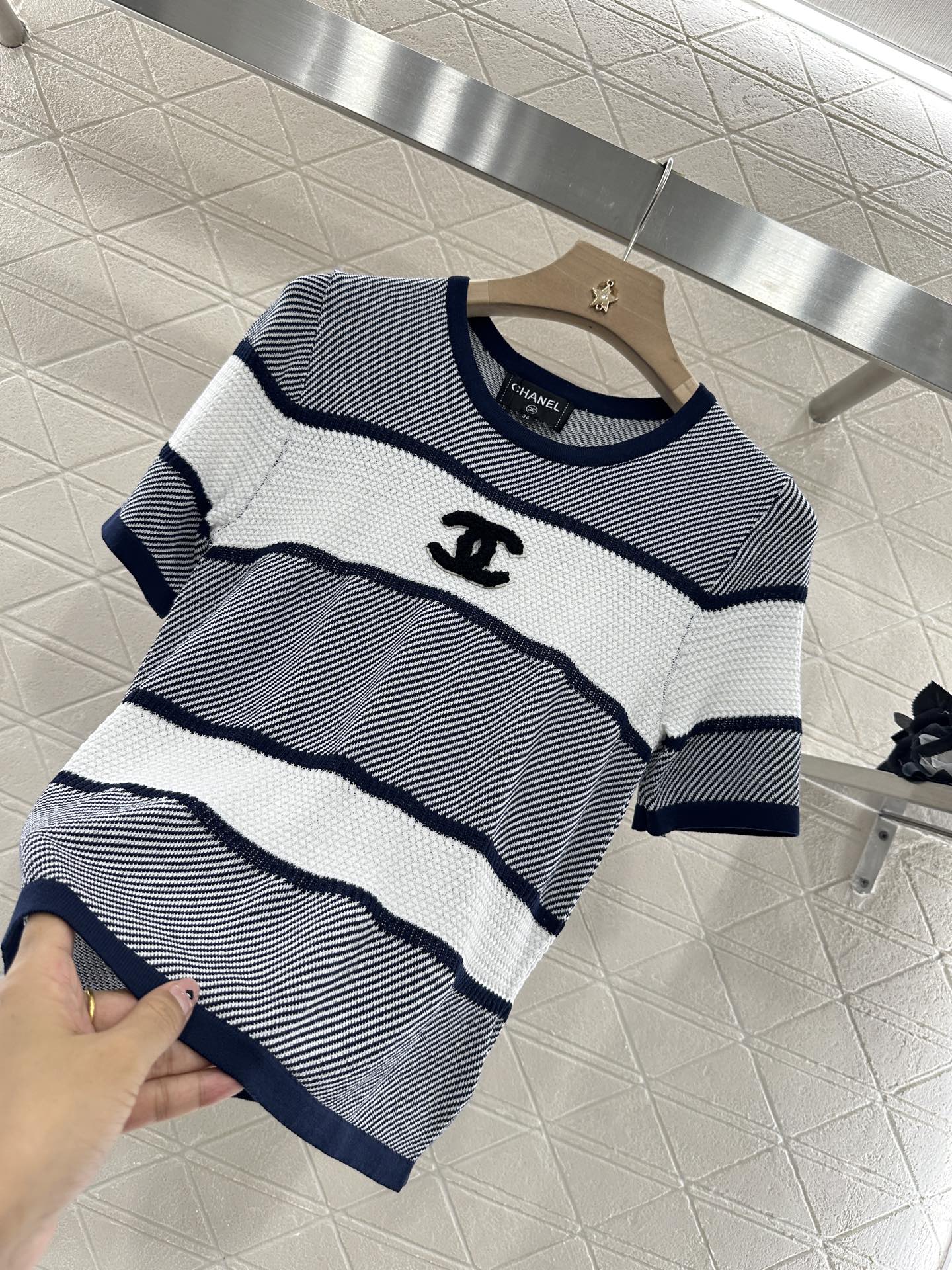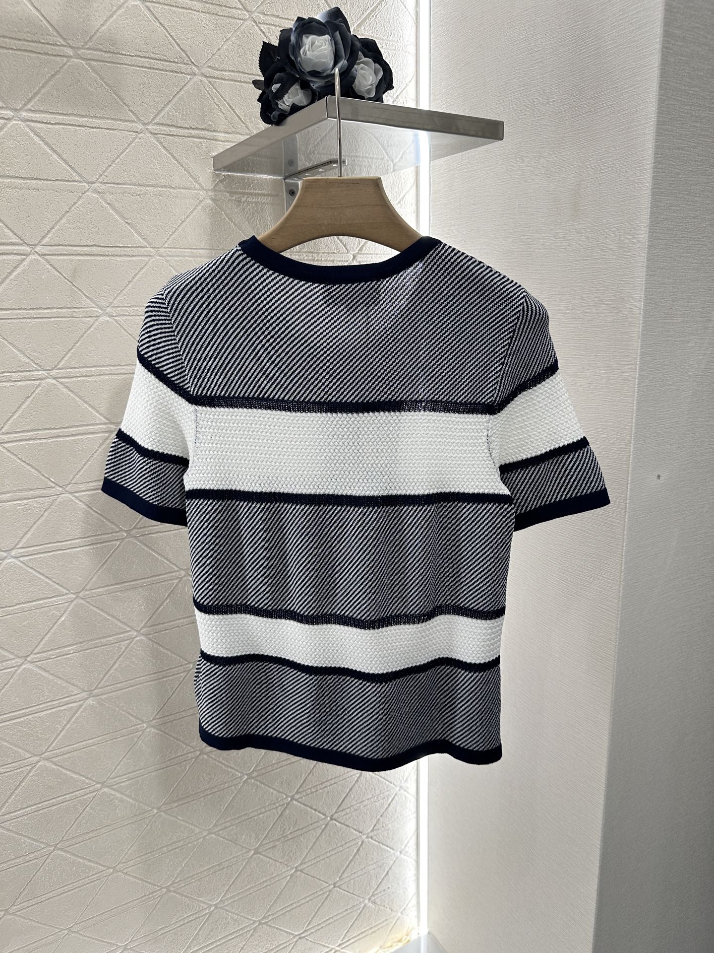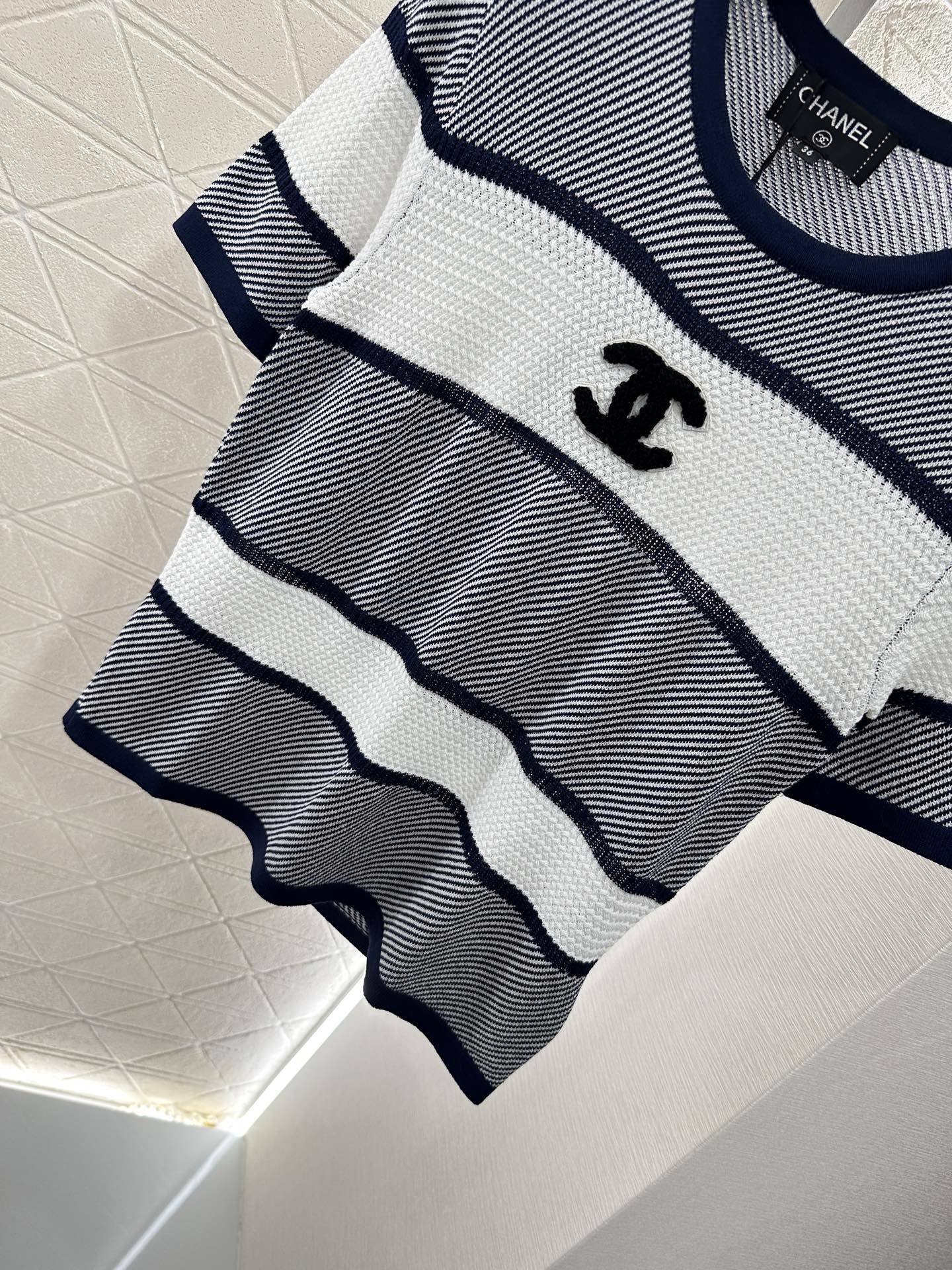 Chanel 25 T-shirt Black White Patchwork Knitted Crewneck