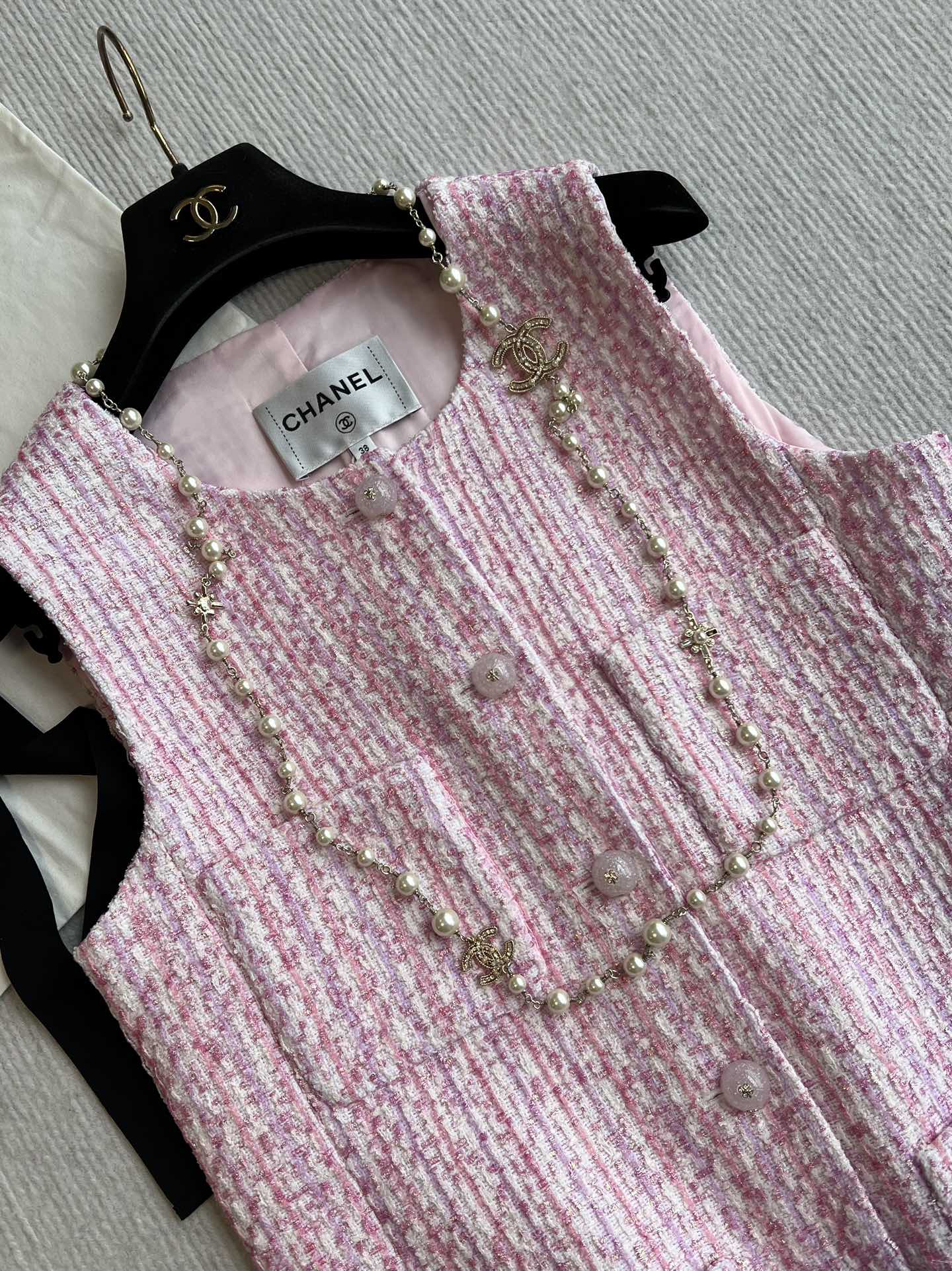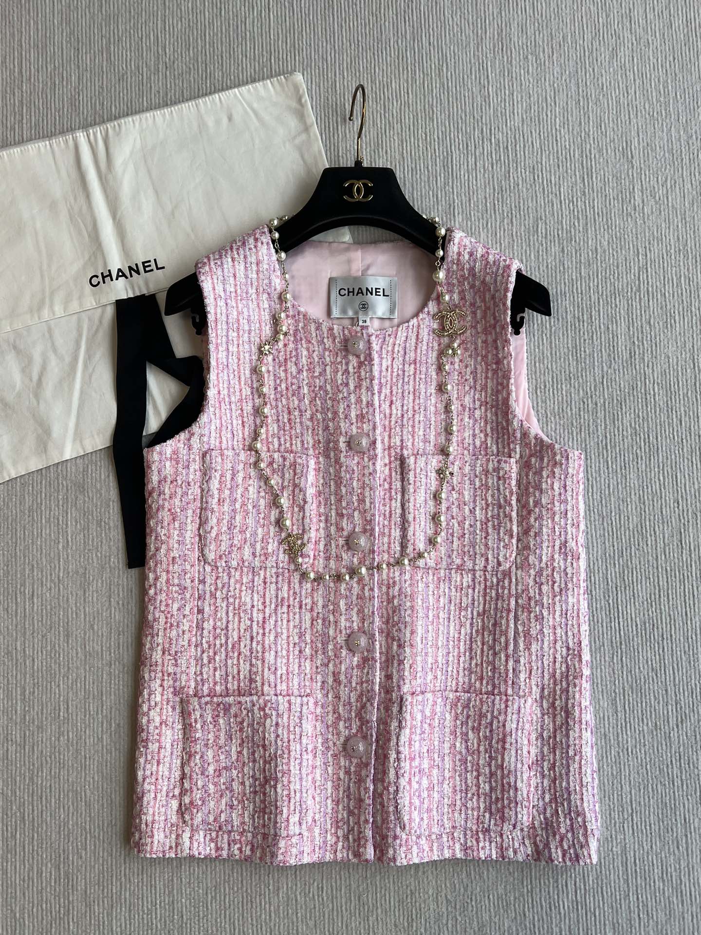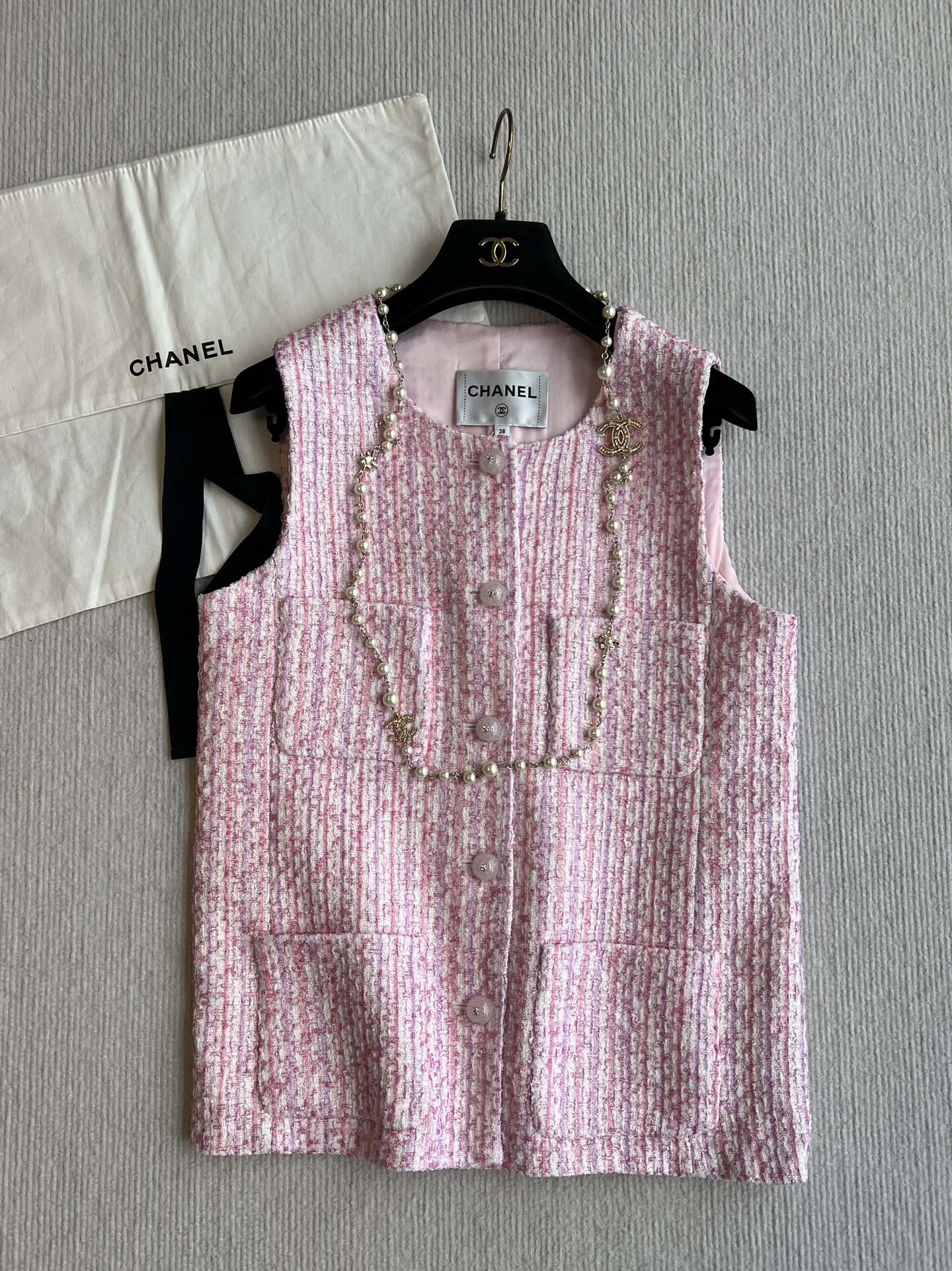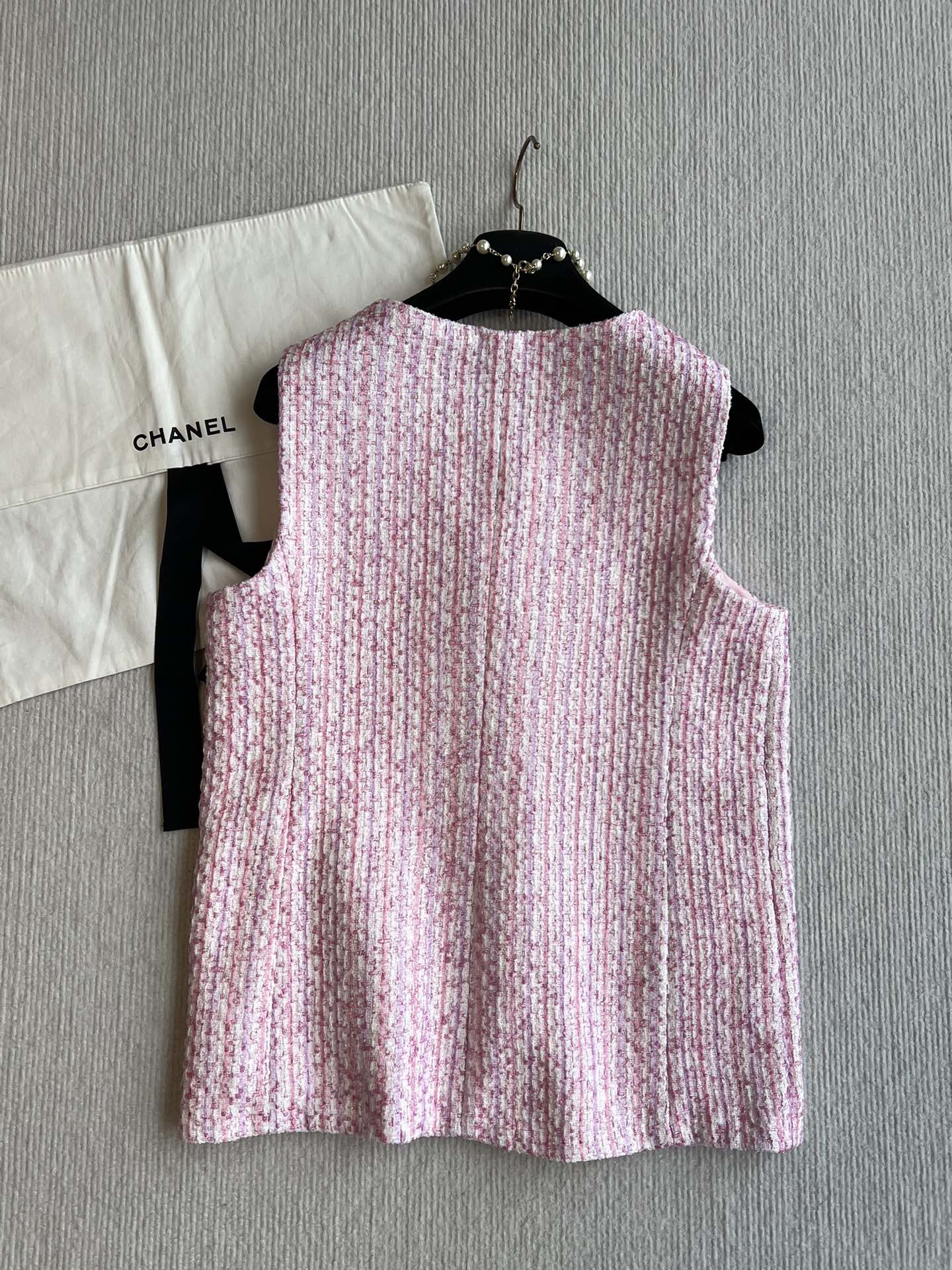 Chanel 25P Gilet Pink Cotton and Wool Tweed 235902
