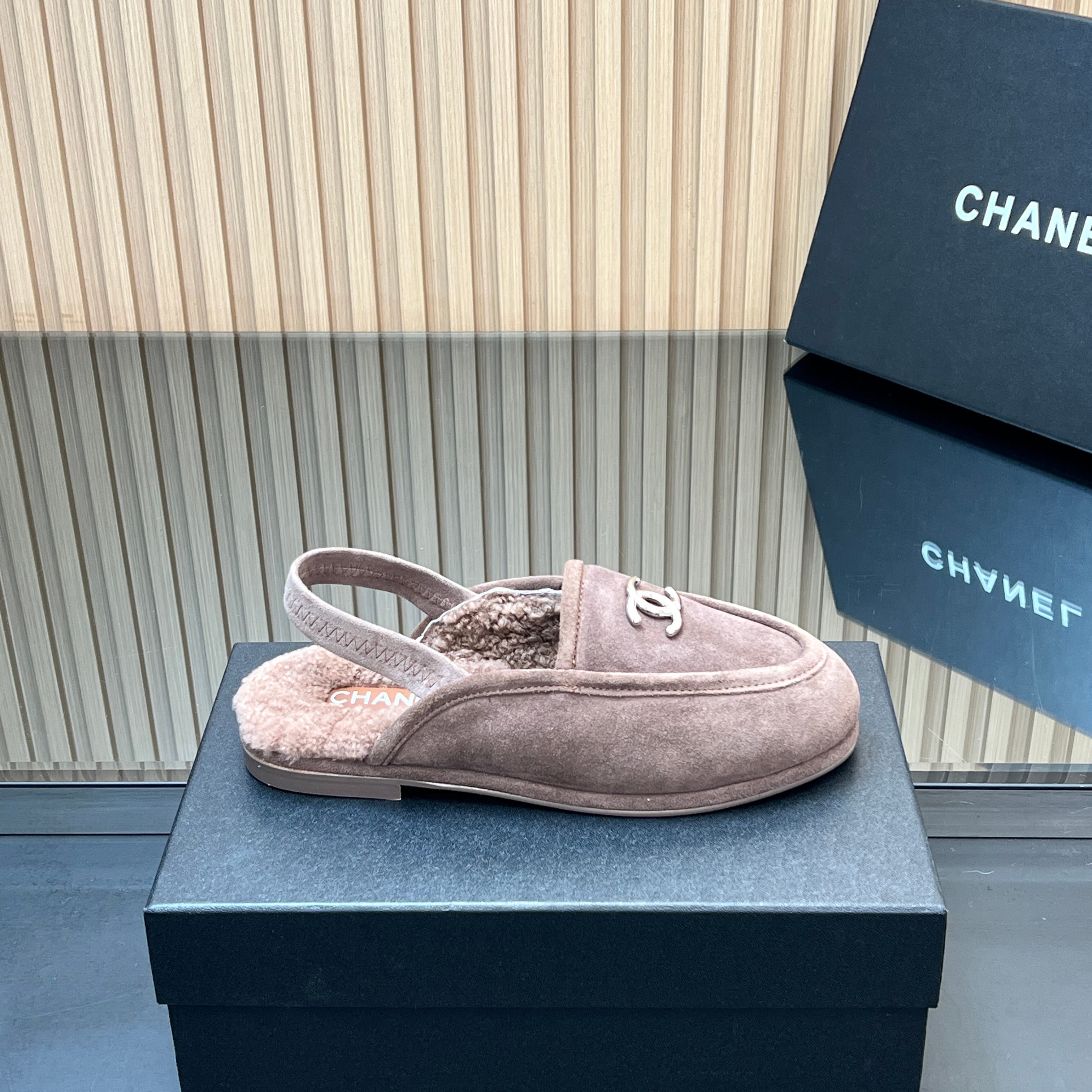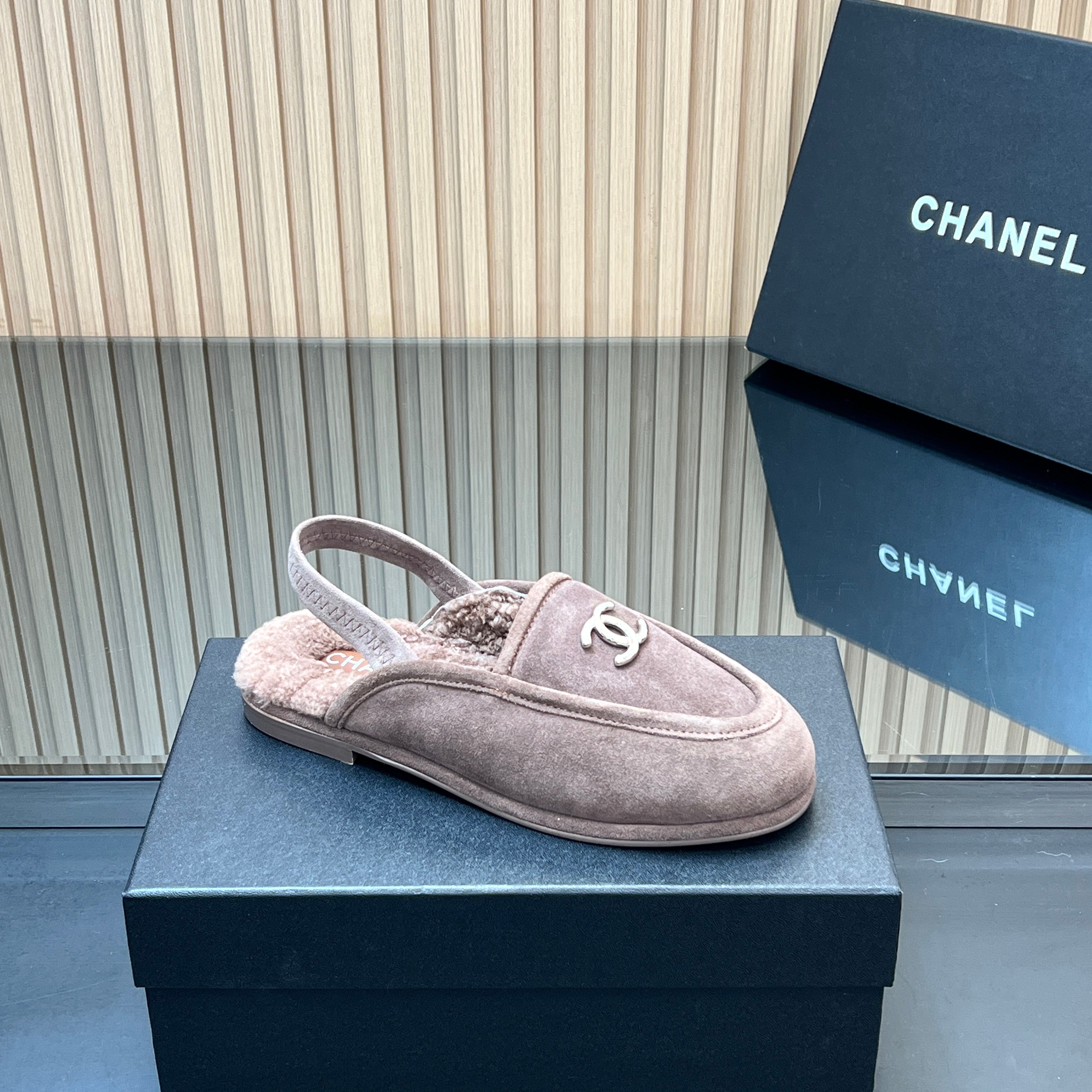 CHANEL 25S BACK STRAP MULE 15MM IN TAUPE GRAY SUEDE AND WOOL SILVER HARDWRE