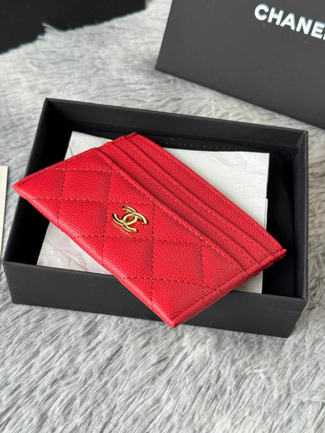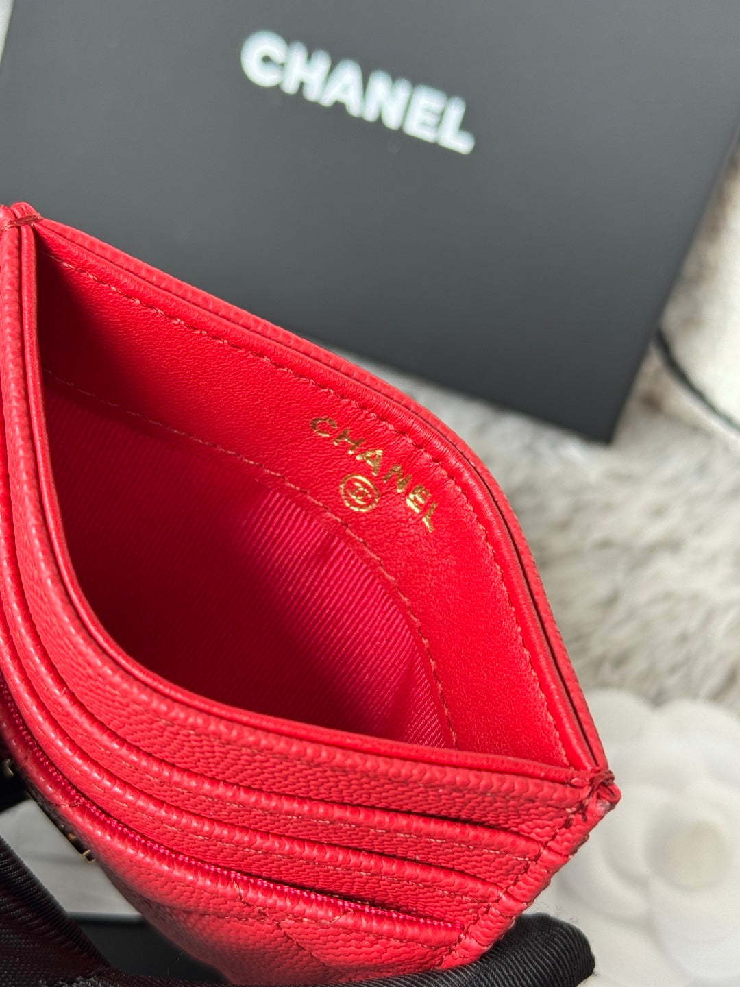 CHANEL 25S CARD HOLDER 11 IN VIVID RED CAVIAR GOLD HARDWARE