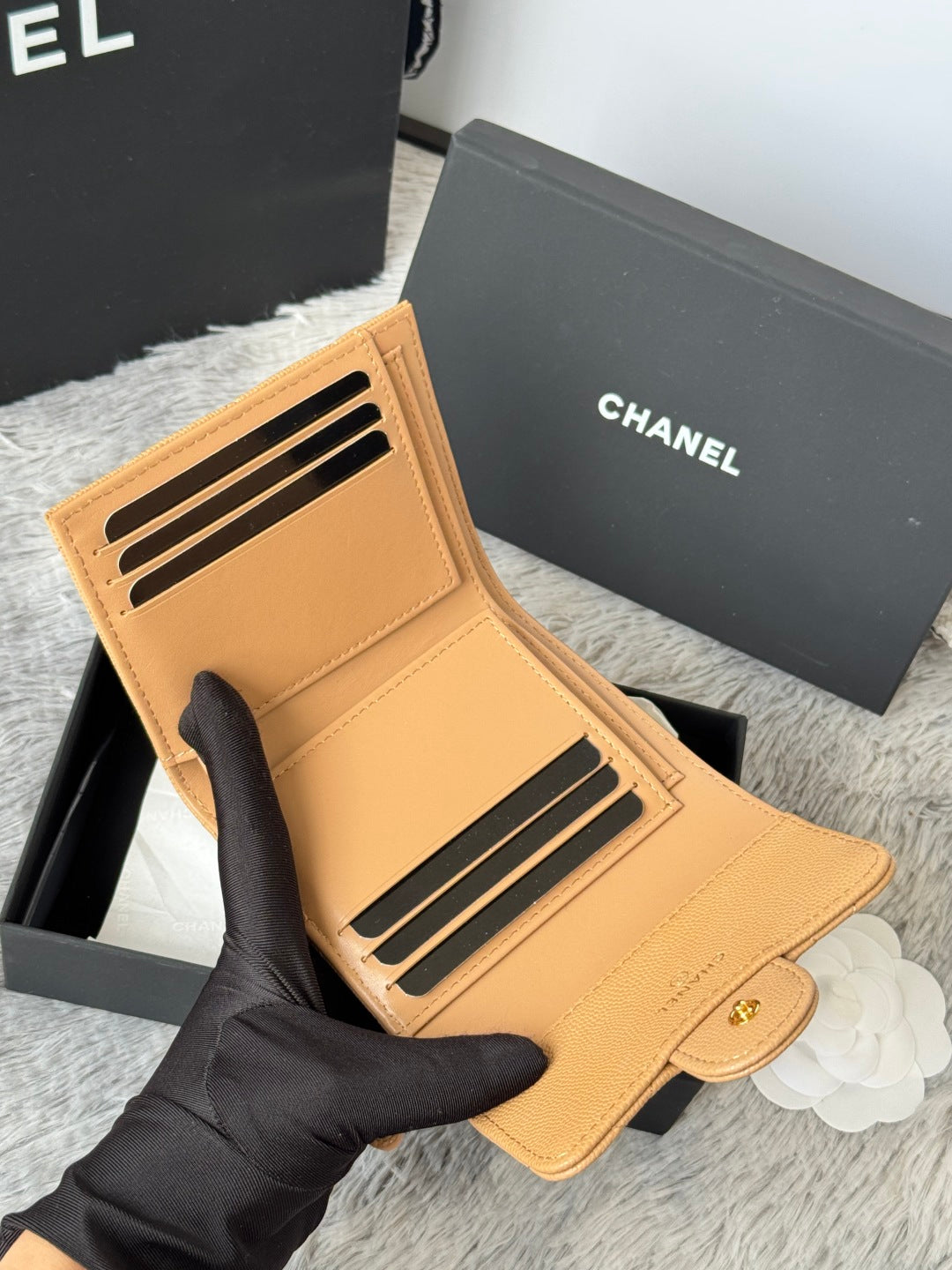 CHANEL 25S CF SMALL TRI FOLD WALLET 11 IN GOLDEN CARAMEL CAVIAR GOLD HARDWARE