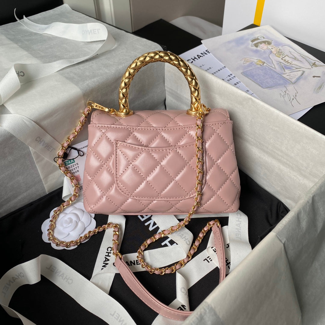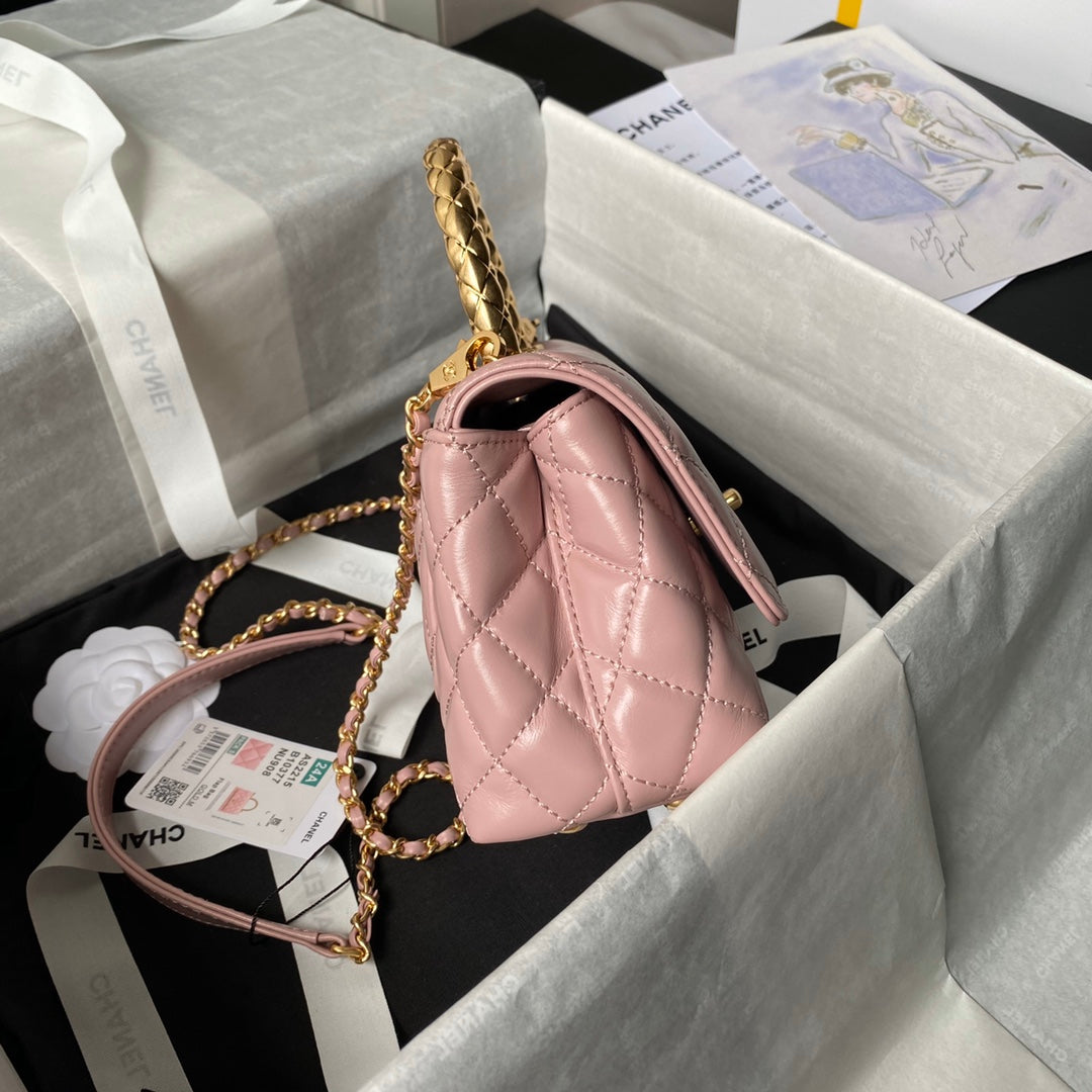 CHANEL 25S CLASSIC COCO HANDLE BAG 19 CM IN LIGHT PINK LAMBSKIN WITH GOLD HARDWARE