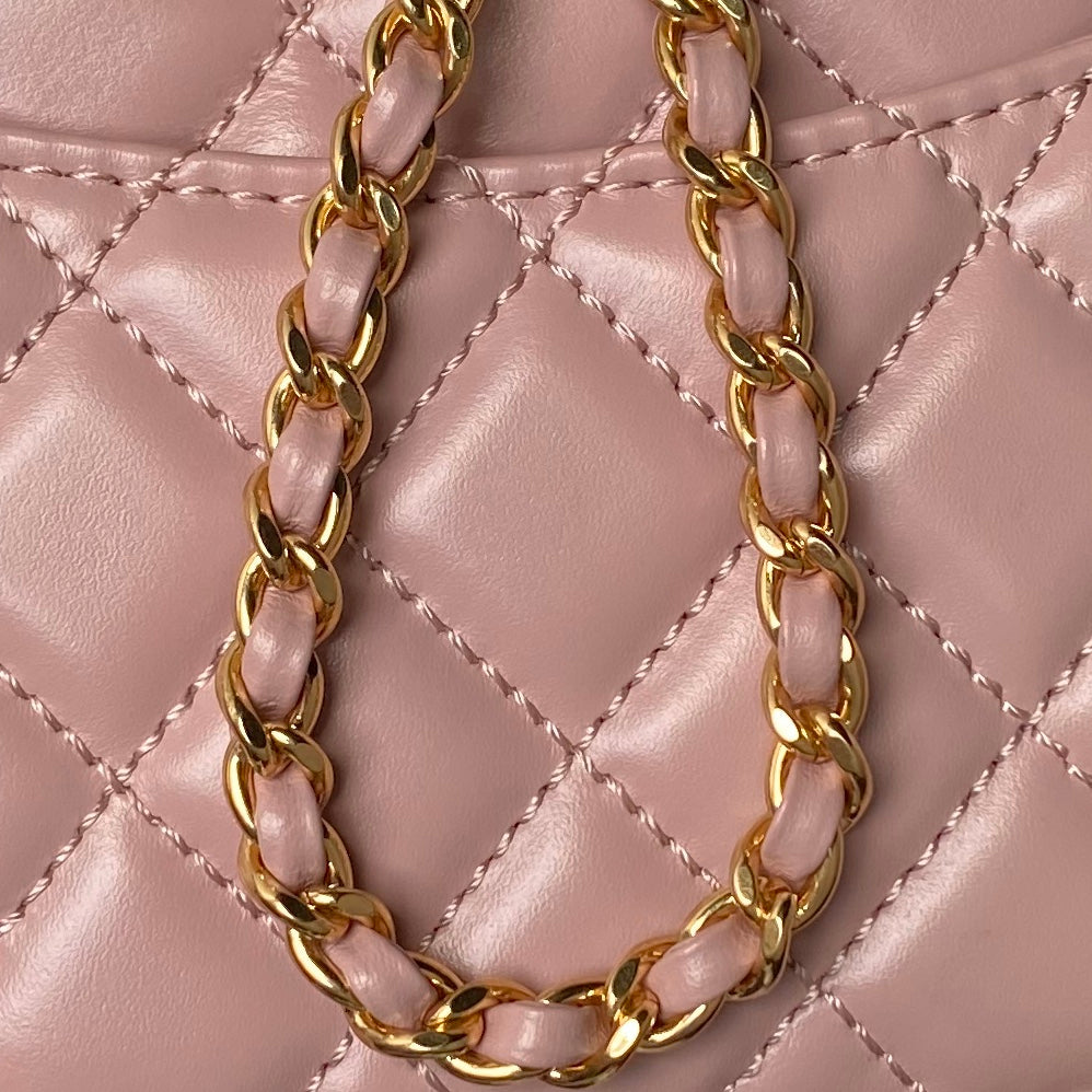 CHANEL 25S CLASSIC COCO HANDLE BAG 23 CM IN LIGHT PINK LAMBSKIN WITH GOLD HARDWARE