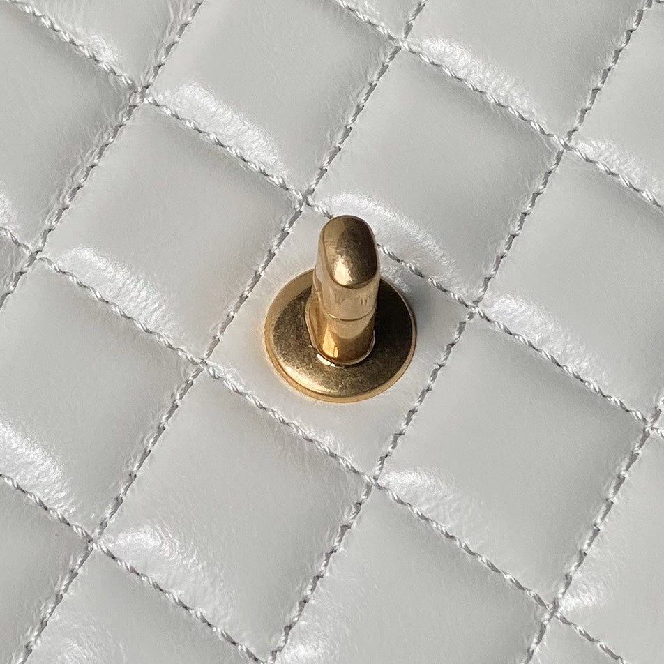 CHANEL 25S CLASSIC COCO HANDLE BAG 23 CM IN WHITE LAMBSKIN WITH GOLD HARDWARE