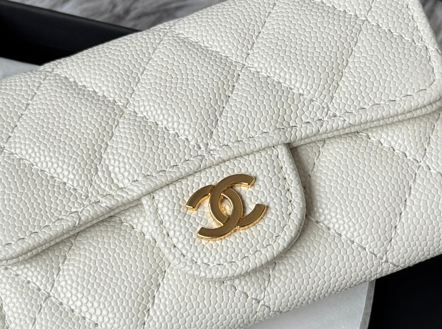 CHANEL 25S CLASSIC FLAP CARD HOLDER 11 IN IVORY CAVIAR GOLD HARDWARE