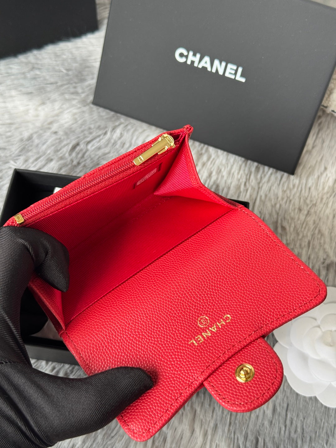 CHANEL 25S CLASSIC FLAP CARD HOLDER 11 IN RUBY RED CAVIAR GOLD HARDWARE