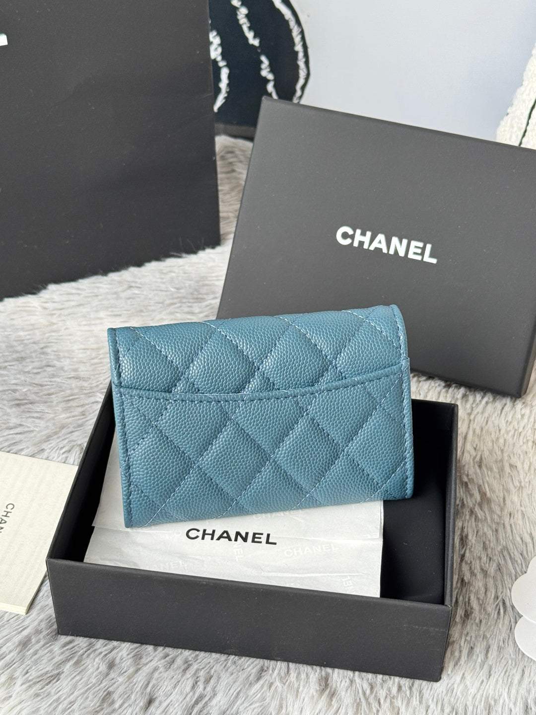 CHANEL 25S CLASSIC FLAP CARD HOLDER 11 IN SLATE BLUE CAVIAR GOLD HARDWARE