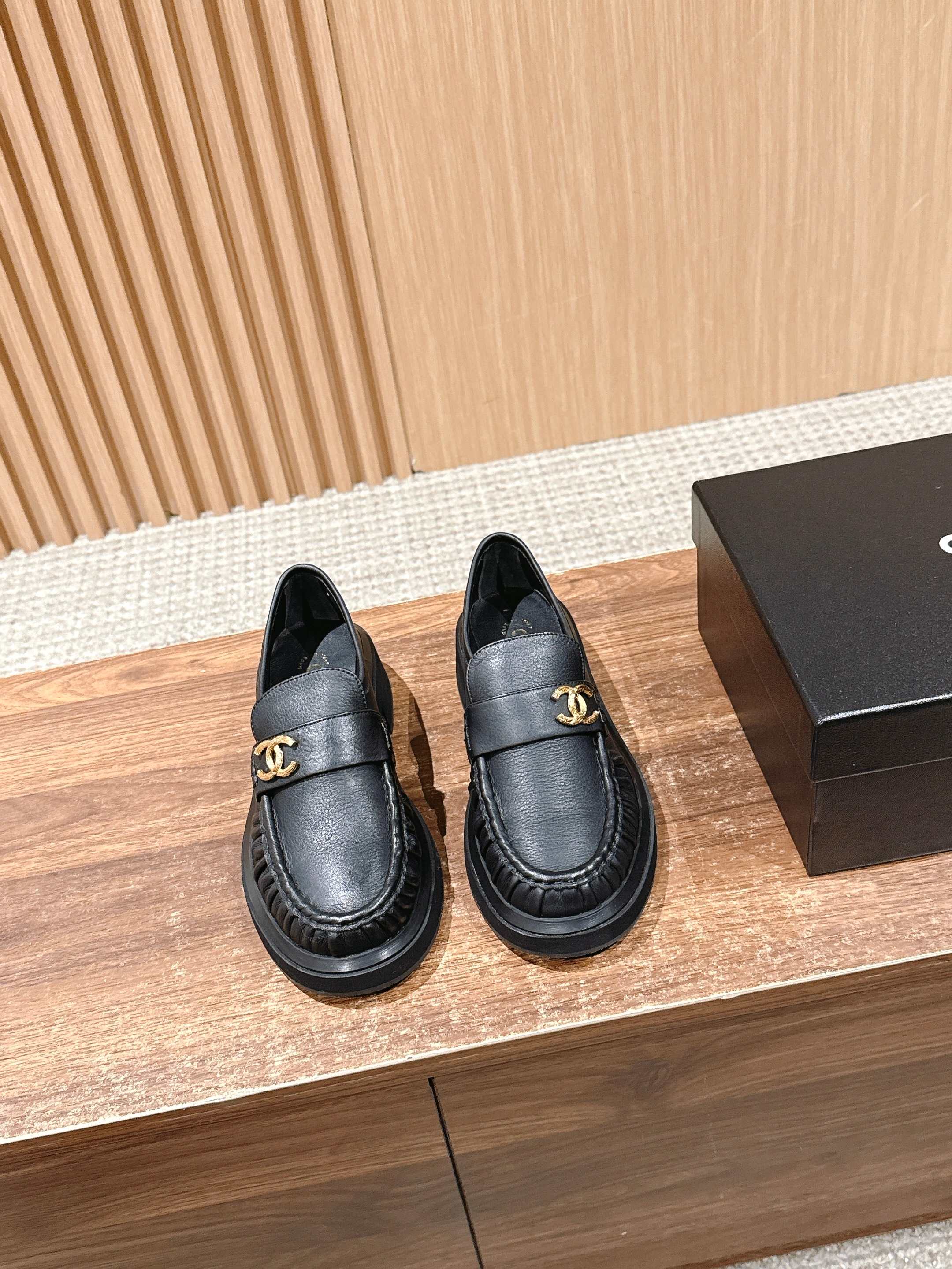 CHANEL 25S DOUBLE MONK STRAP PLEATED LOAFERS BLACK IN CALFSKIN