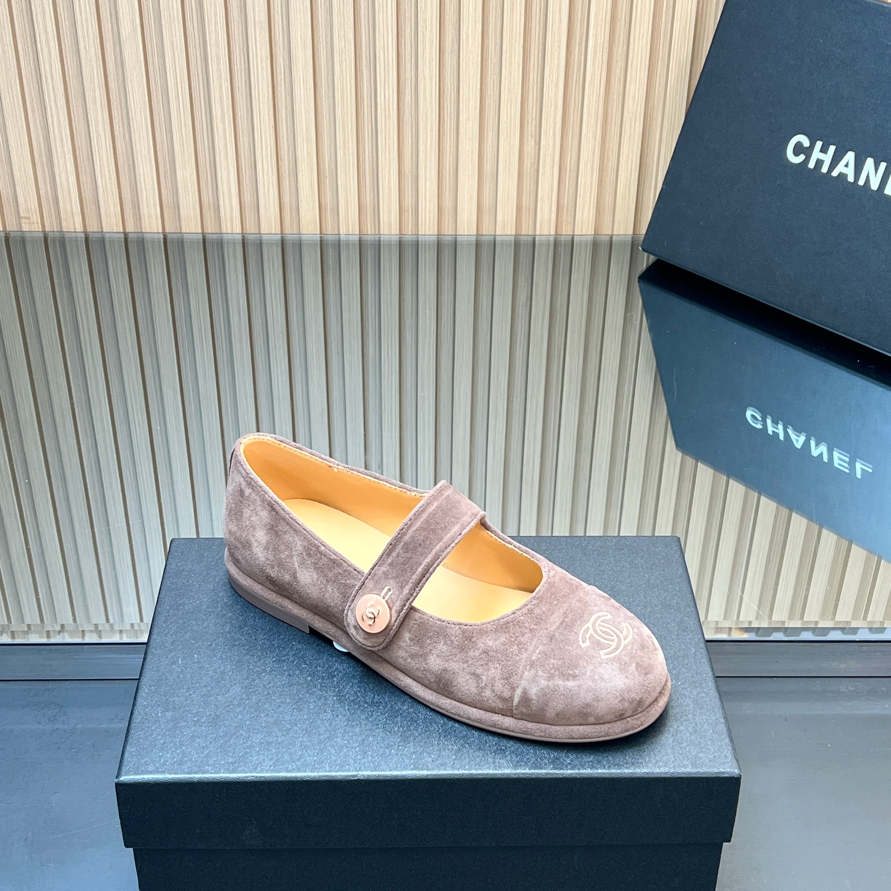 CHANEL 25S DOUBLE-STRAP MARY JANE SHOES IN TAUPE GRAY SUEDE