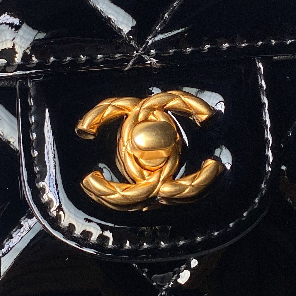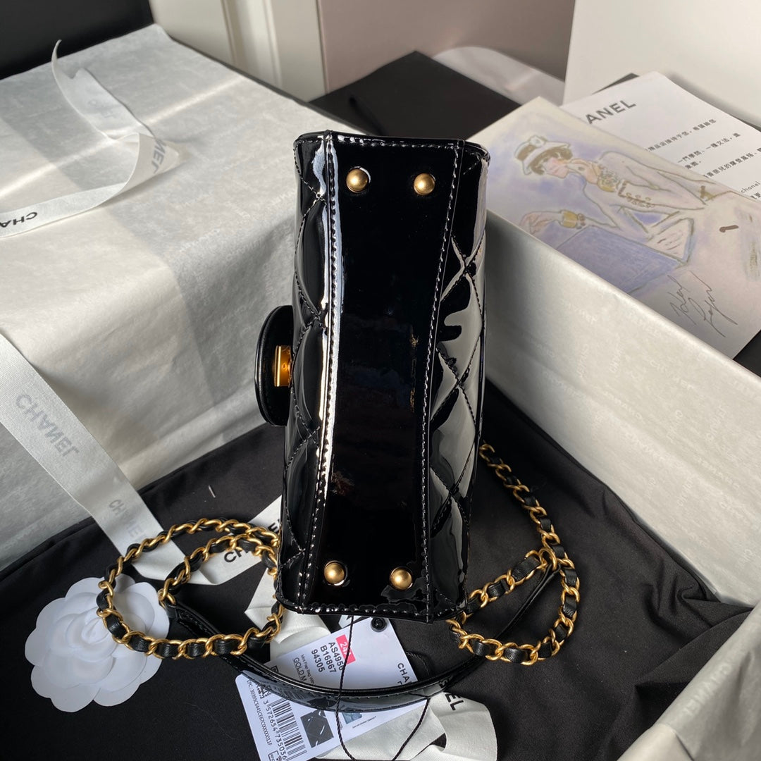 CHANEL 25S FLAP BAG 18 CM IN BLACK PATENT LAMBSKIN WITH TOP HANDLE