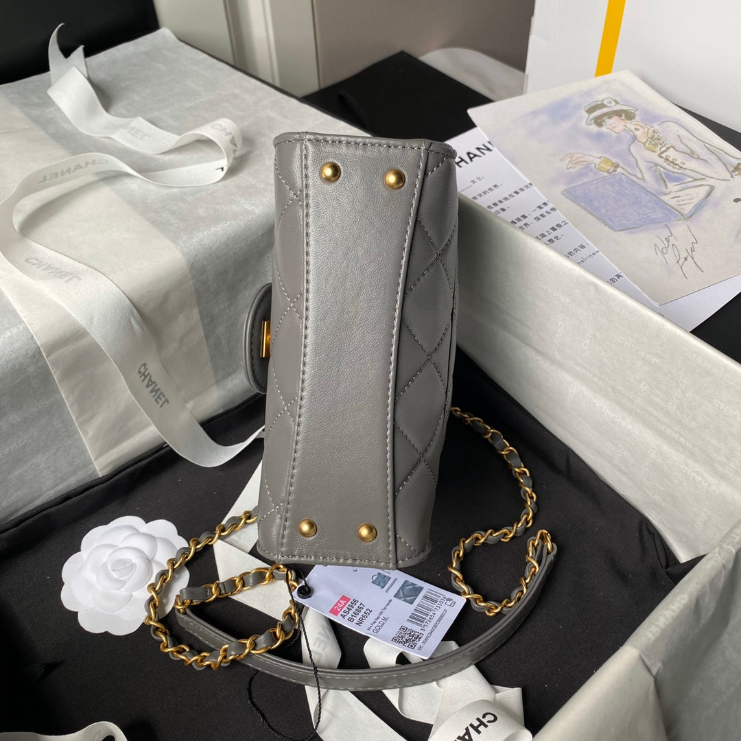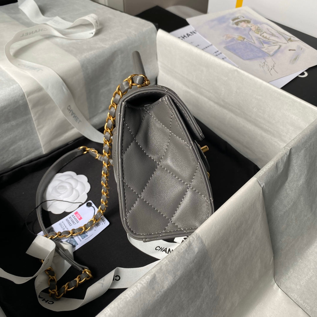 CHANEL 25S FLAP BAG 18 CM IN DARK GREY LAMBSKIN WITH TOP HANDLE