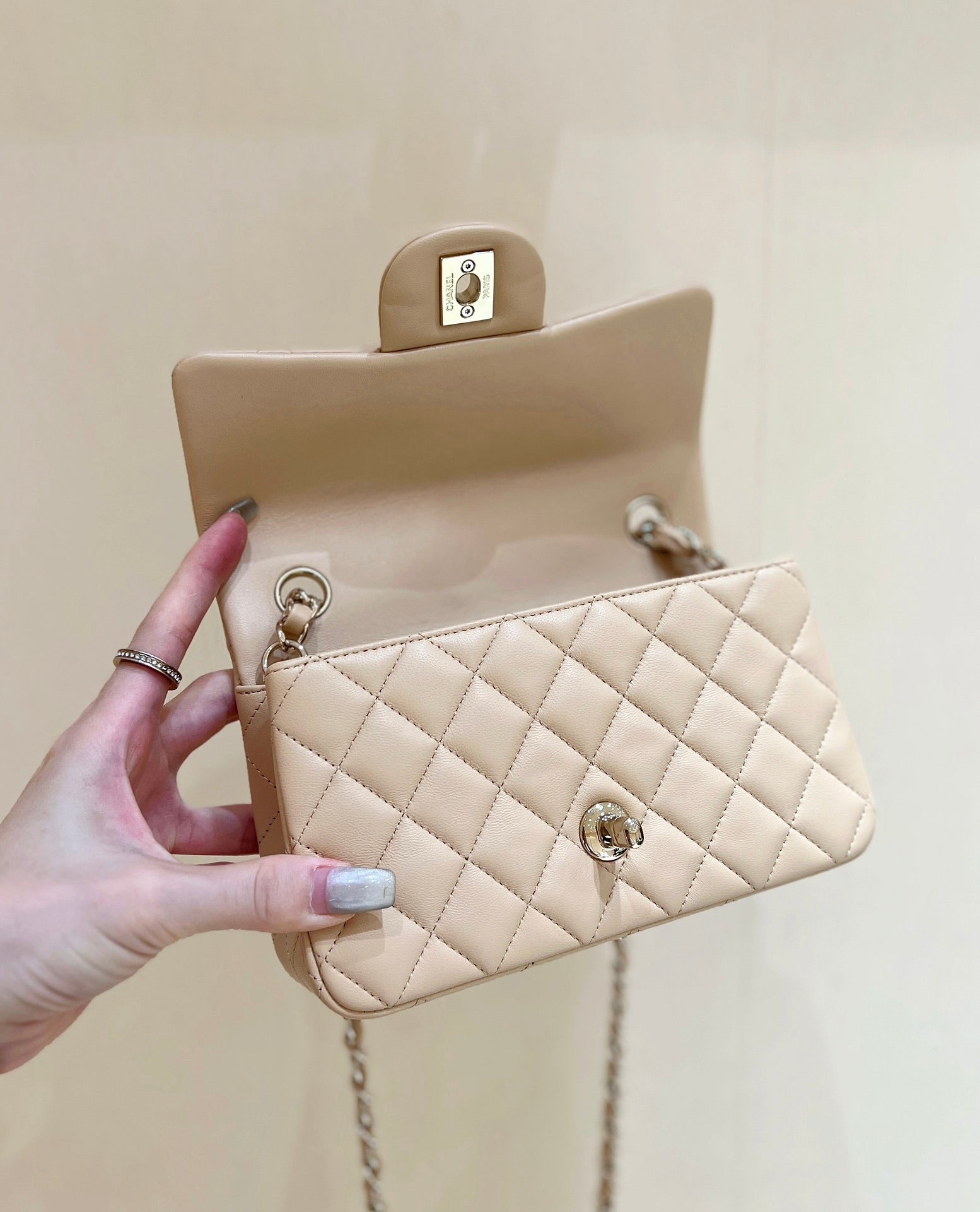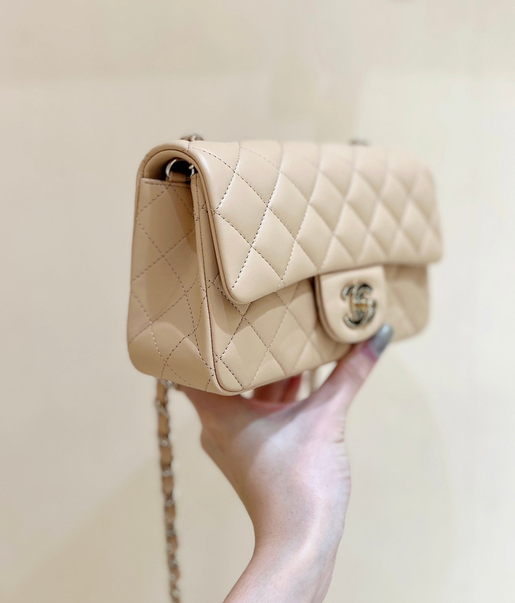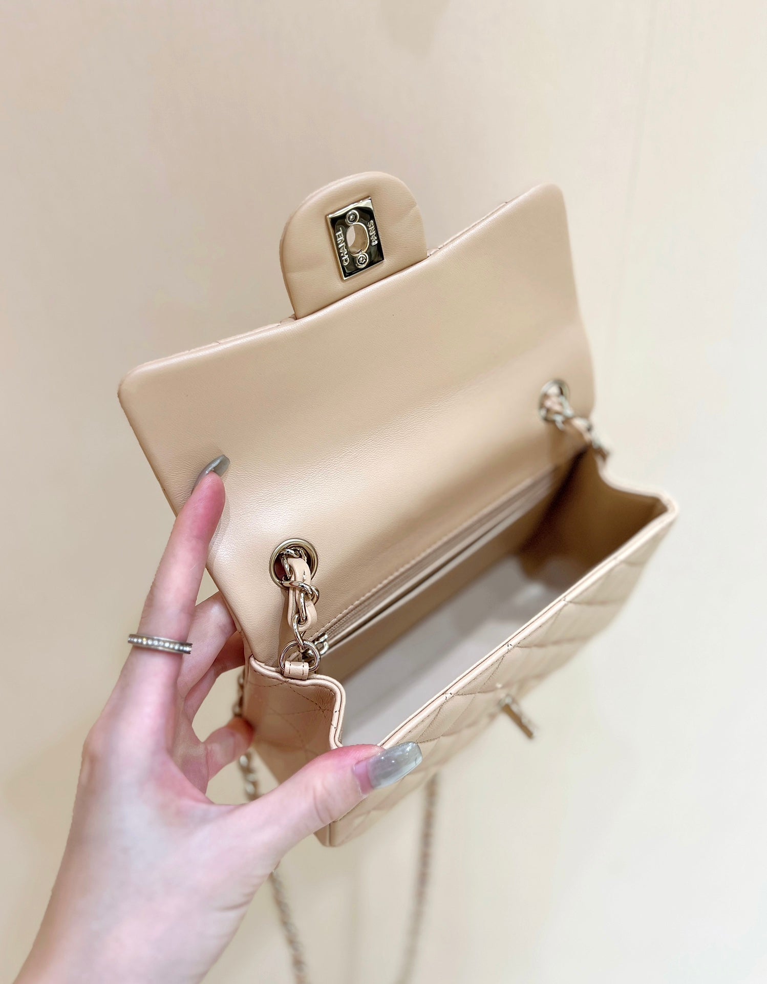 CHANEL 25S FLAP BAG 20 CM IN LIGHT BEIGE LAMBSKIN WITH GOLD HARDWARE