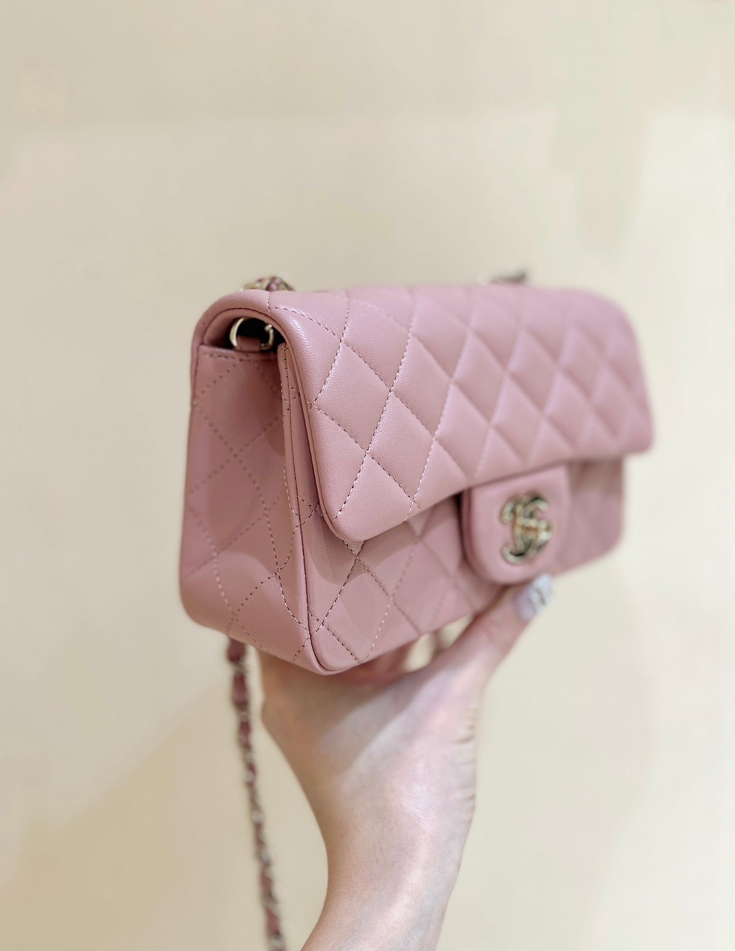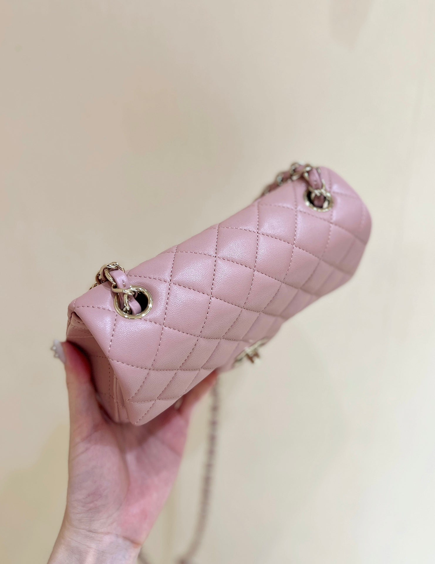 CHANEL 25S FLAP BAG 20 CM IN LIGHT PINK LAMBSKIN WITH GOLD HARDWARE