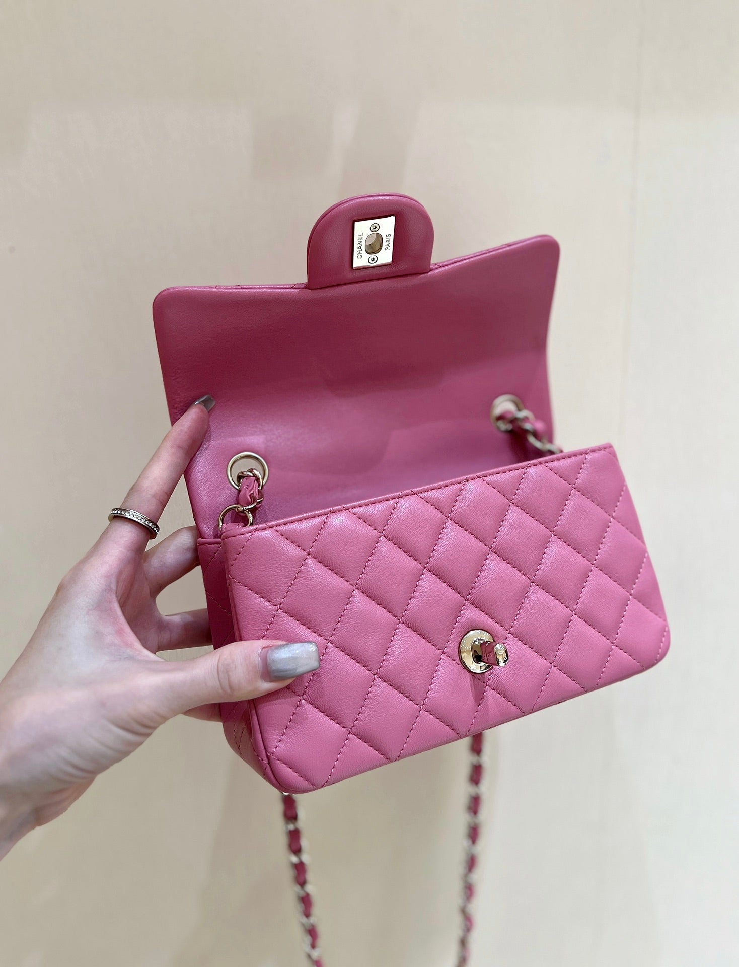 CHANEL 25S FLAP BAG 20 CM IN PINK LAMBSKIN WITH GOLD HARDWARE