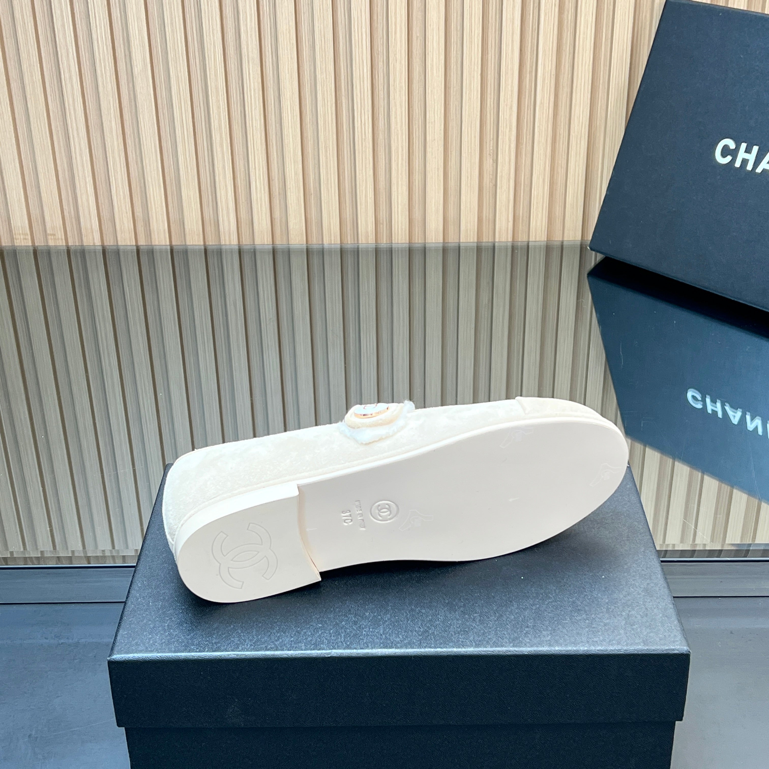 CHANEL 25S FURRY MARY JANE SHOES IN IVORY SUEDE