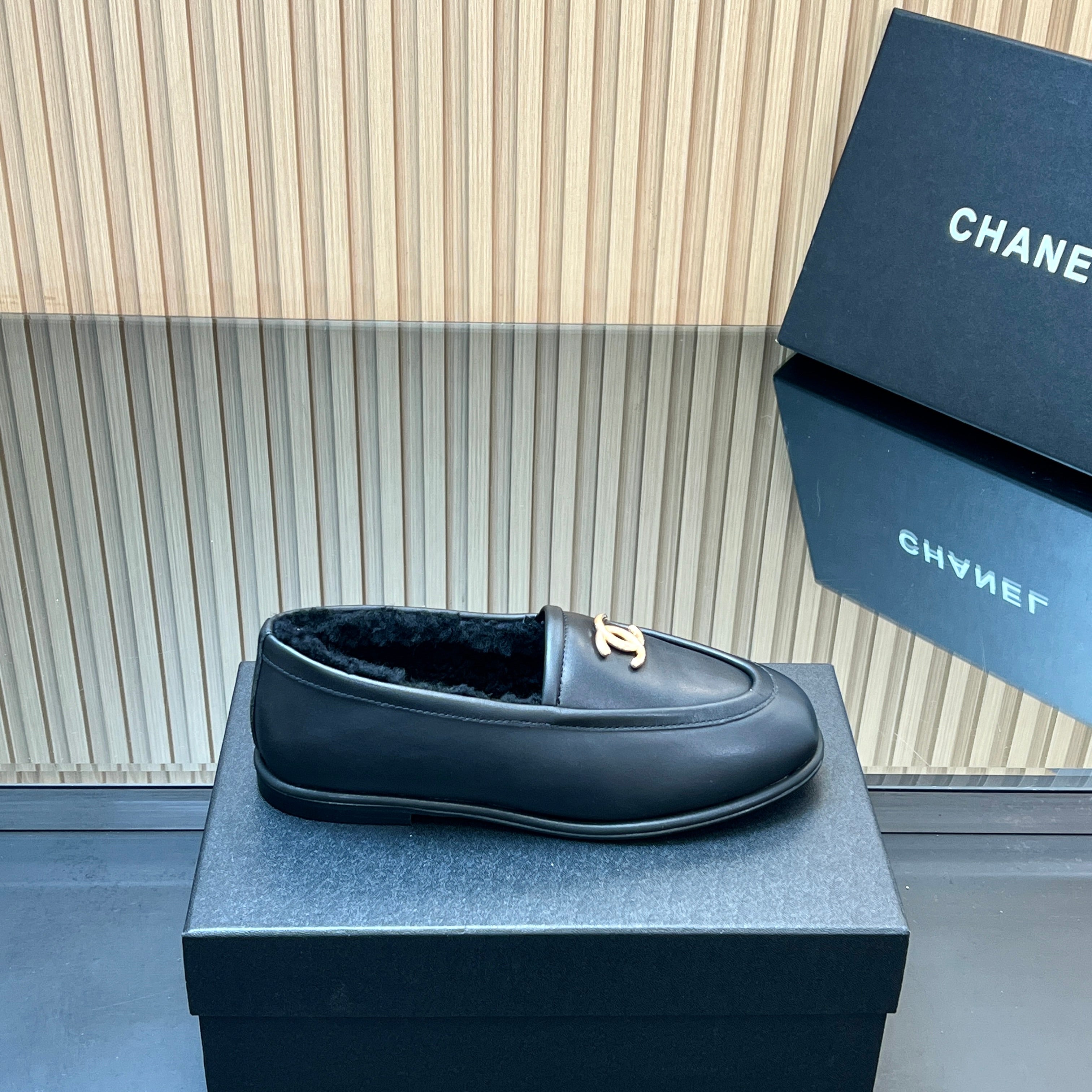 CHANEL 25S MARY JANE BALLET FLATS IN BLACK CALFSKIN AND SOLF FLEECE LINING