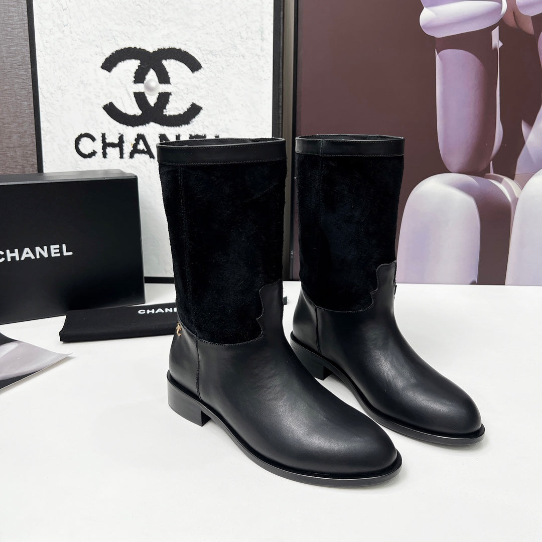 CHANEL 25S MID-CALF BOOTS 35MM IN BLACK CALFSKIN AND SUEDE GOLD HARDWRE