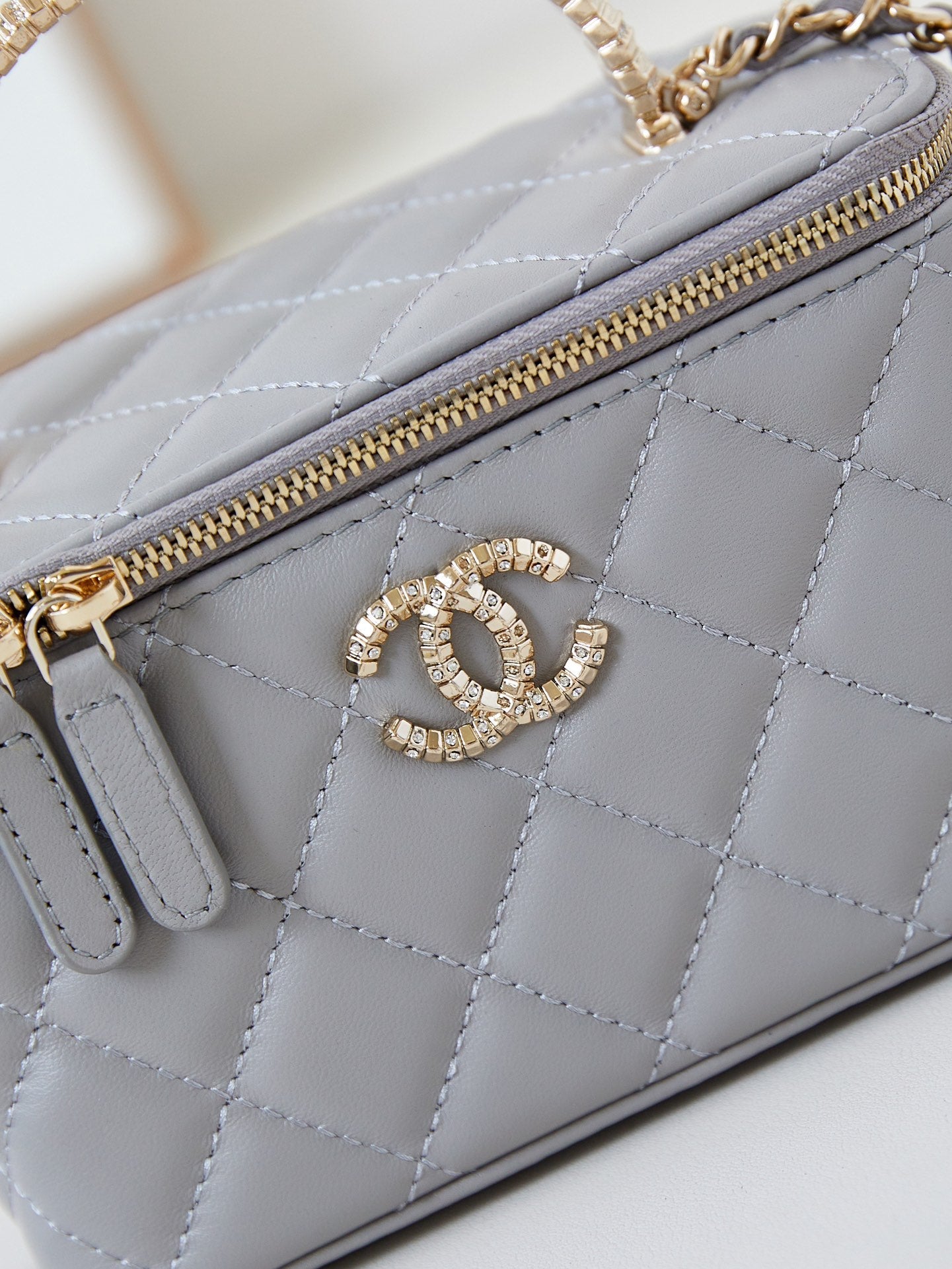 CHANEL 25S MINI VANITY BAG 16 CM IN GREY LAMBSKIN WITH CRYSTAL-EMBELLISHED CC LOGO