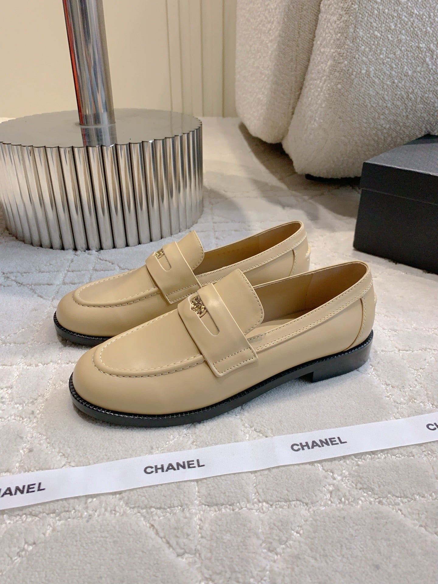 CHANEL 25S MOCCASINS IN BEIGE CALFSKIN GOLD HARDWARE