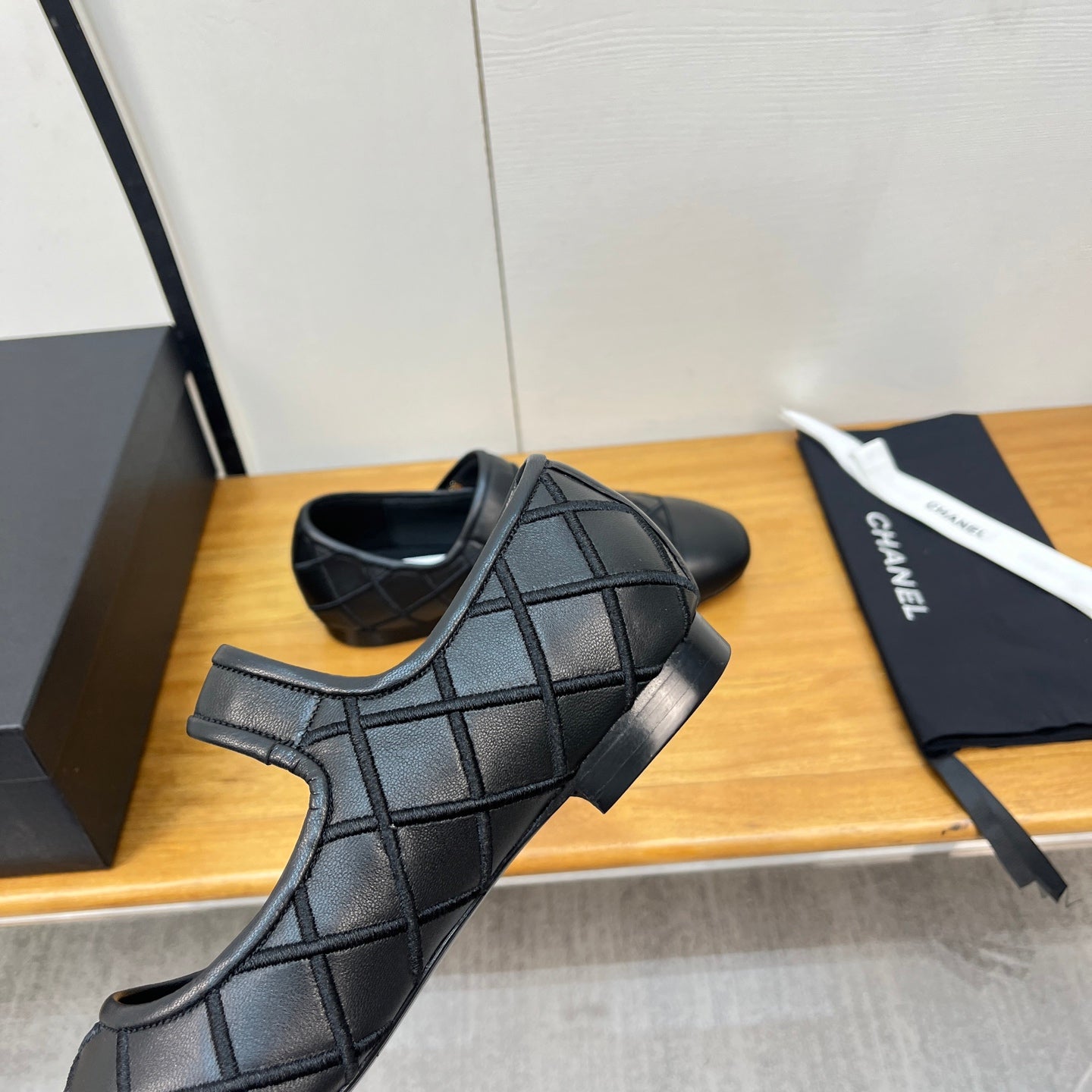 CHANEL FLAT MARY JANE SHOES 25S IN BLACK VELVET
