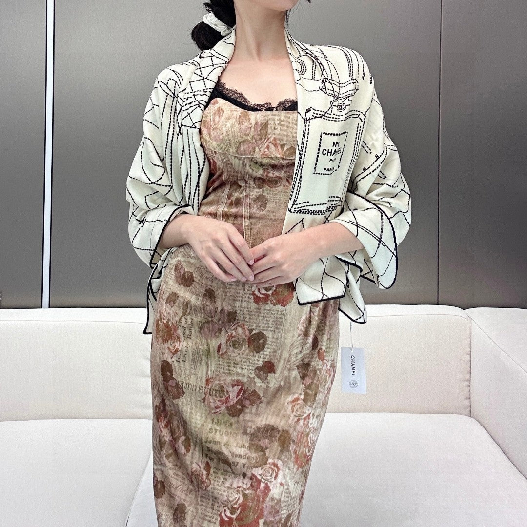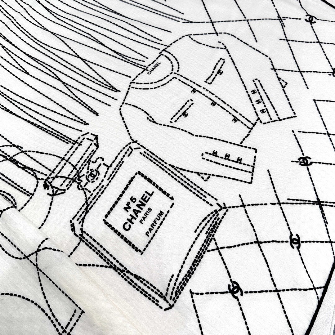 CHANEL 25S SCARF 140 IN CASHMERE SILK 727347