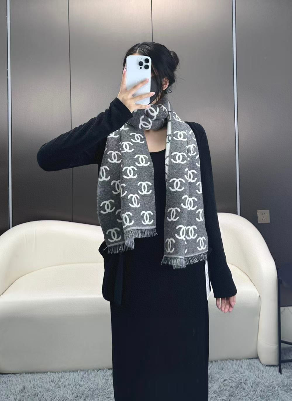 CHANEL 25S SCARF 180 IN CASHMERE WOOL 733941