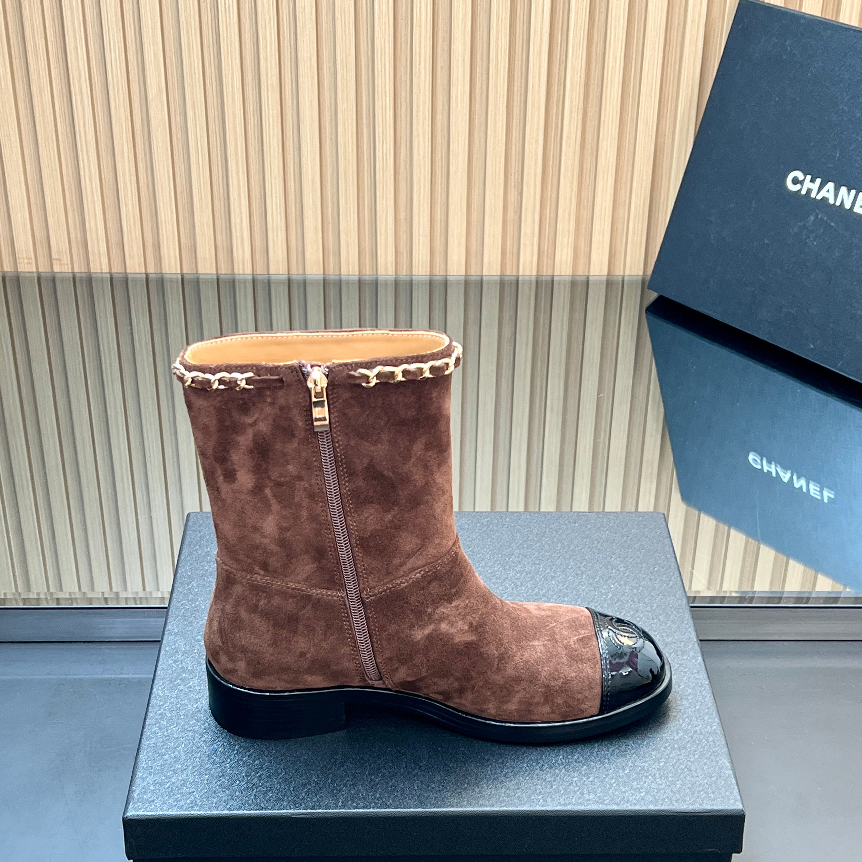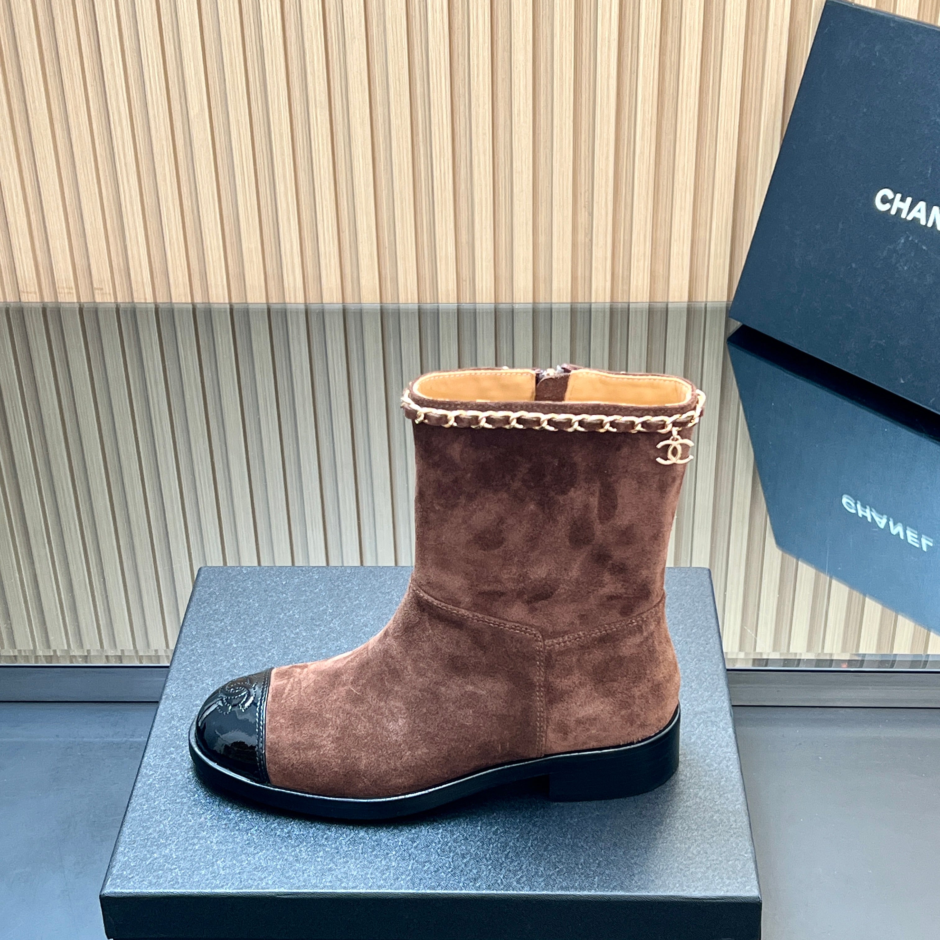 CHANEL 25S SHORT BOOTS WITH CHAIN IN DARK BROWN SUEDE