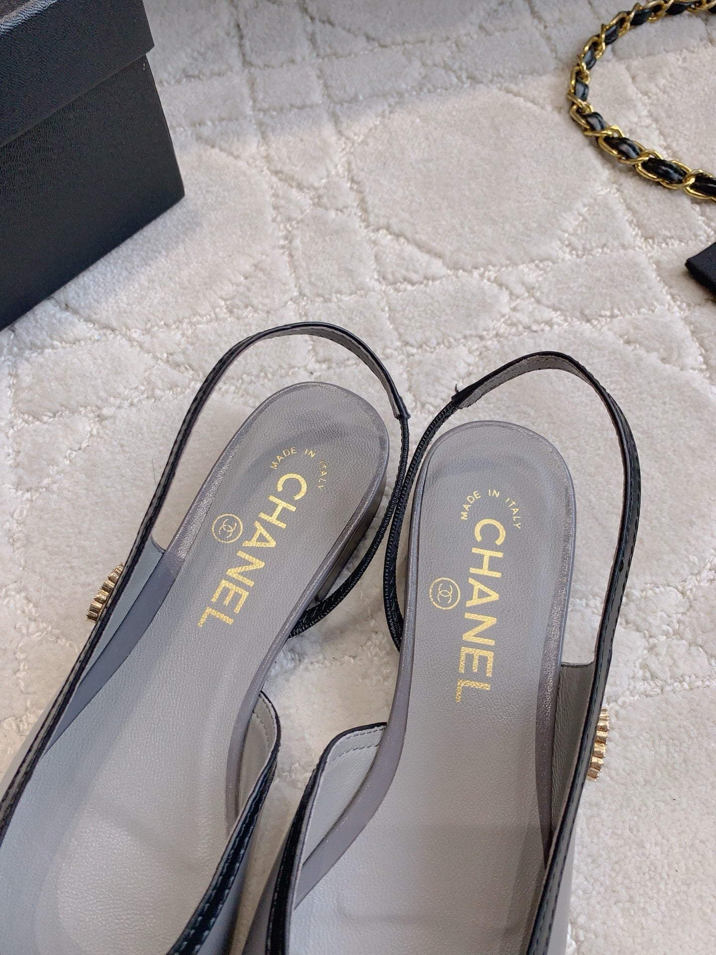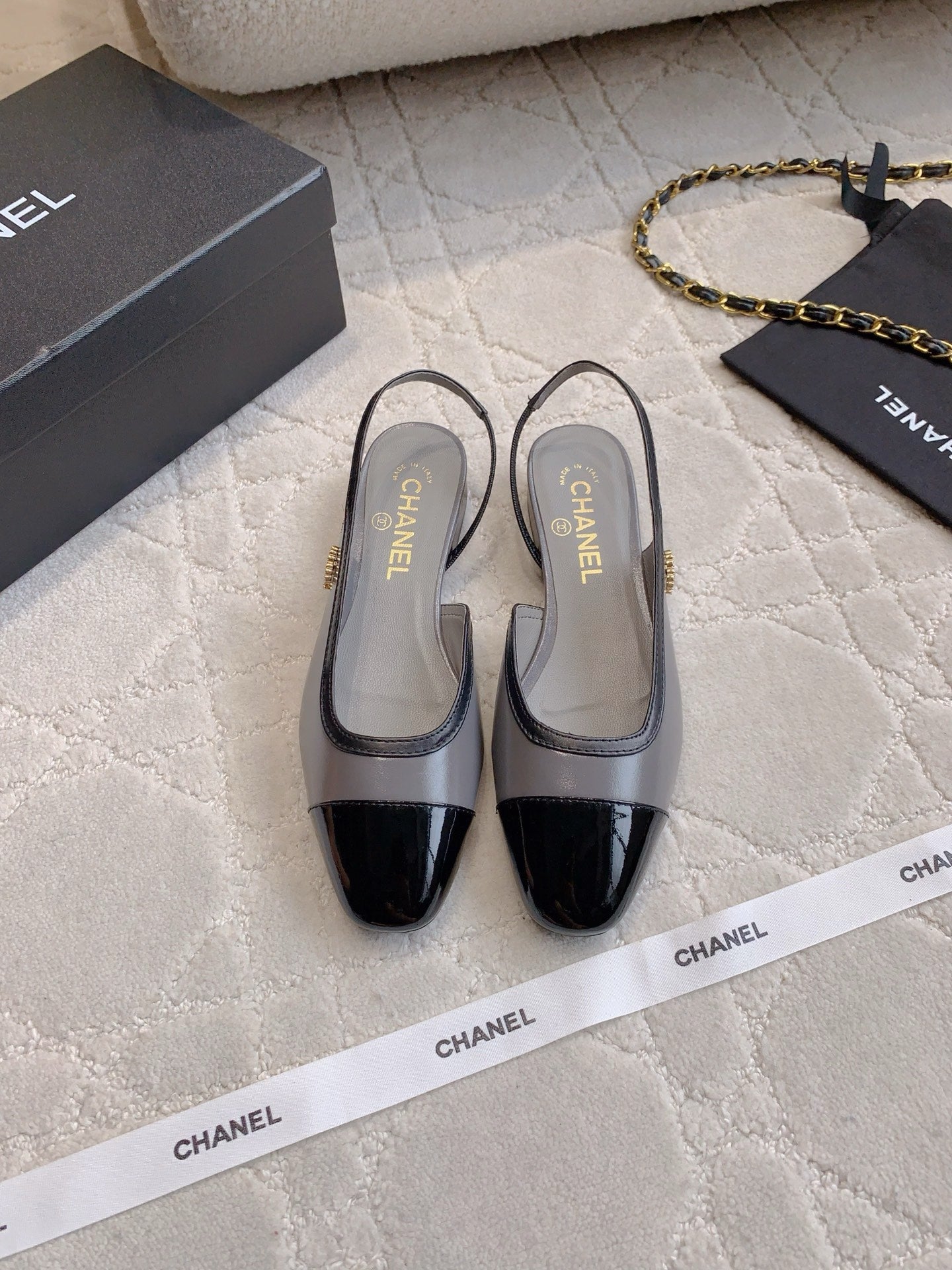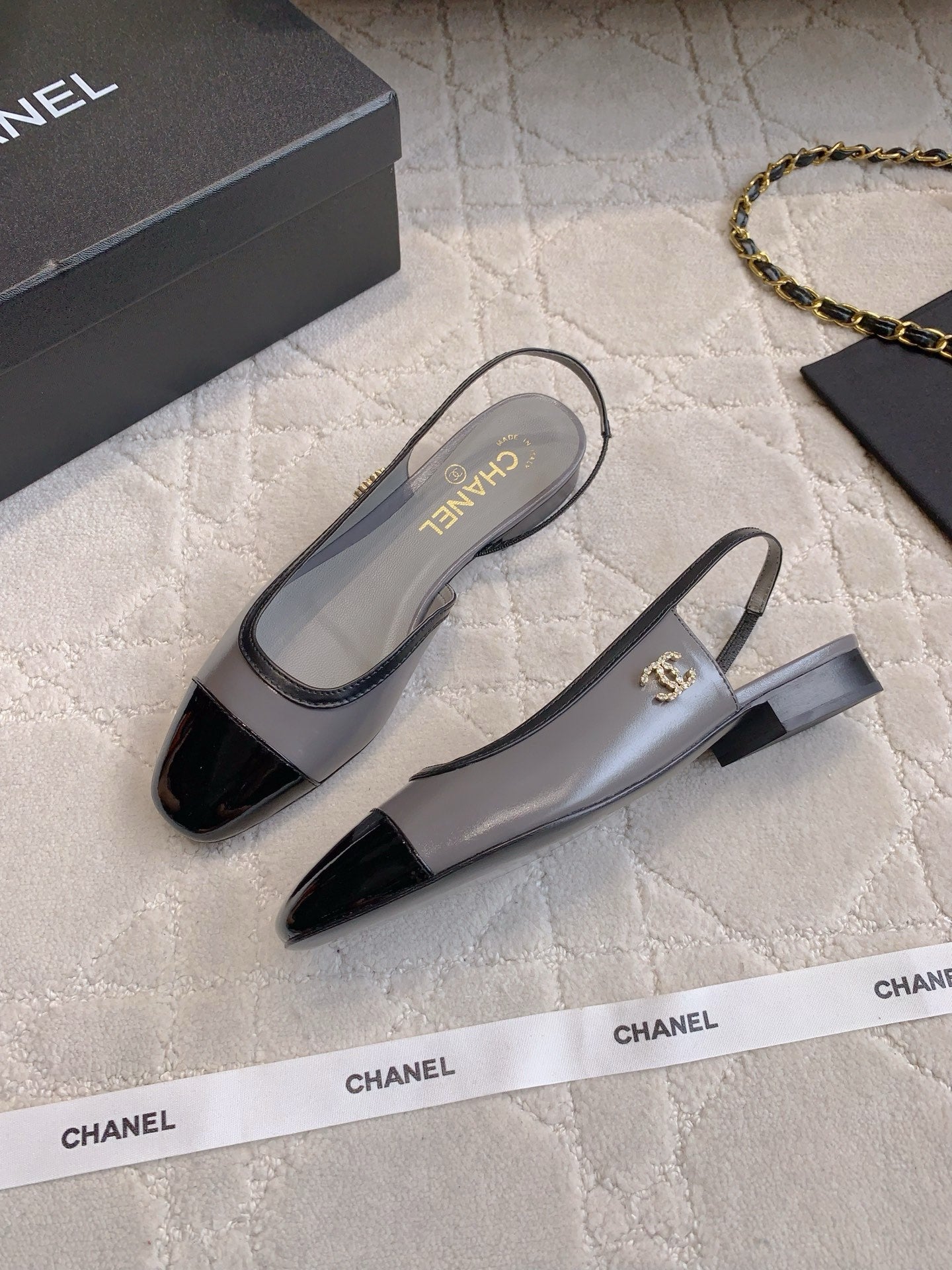 CHANEL 25S SLINGBACK IN BLACK AND TAUPE GRAY CALFSKIN GOLD HARDWARE
