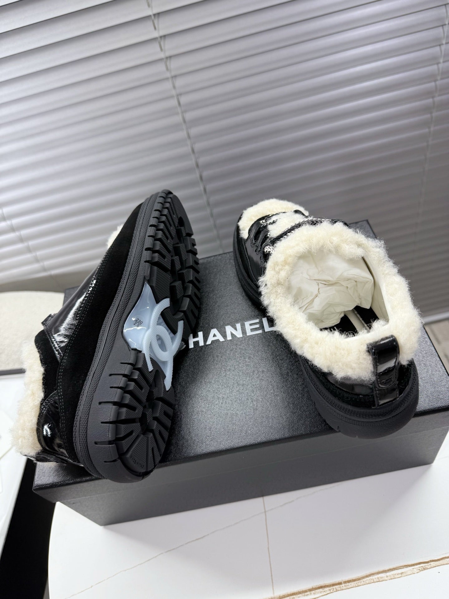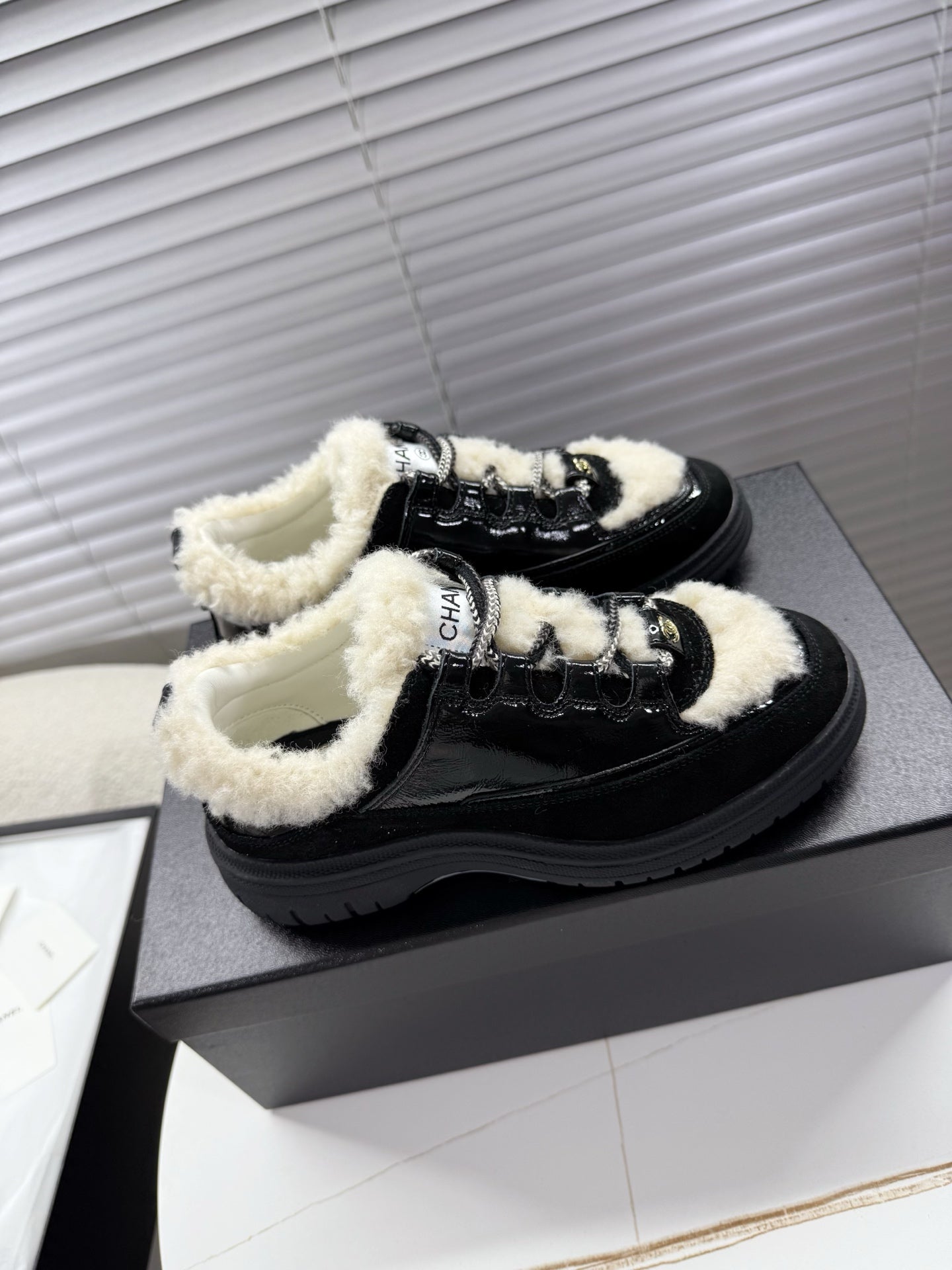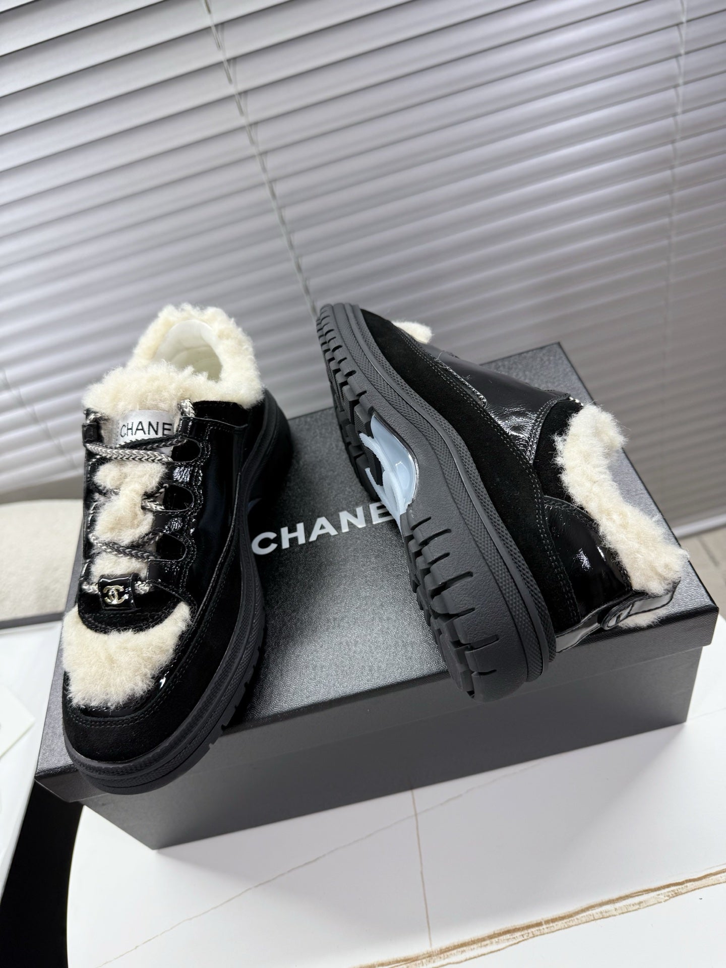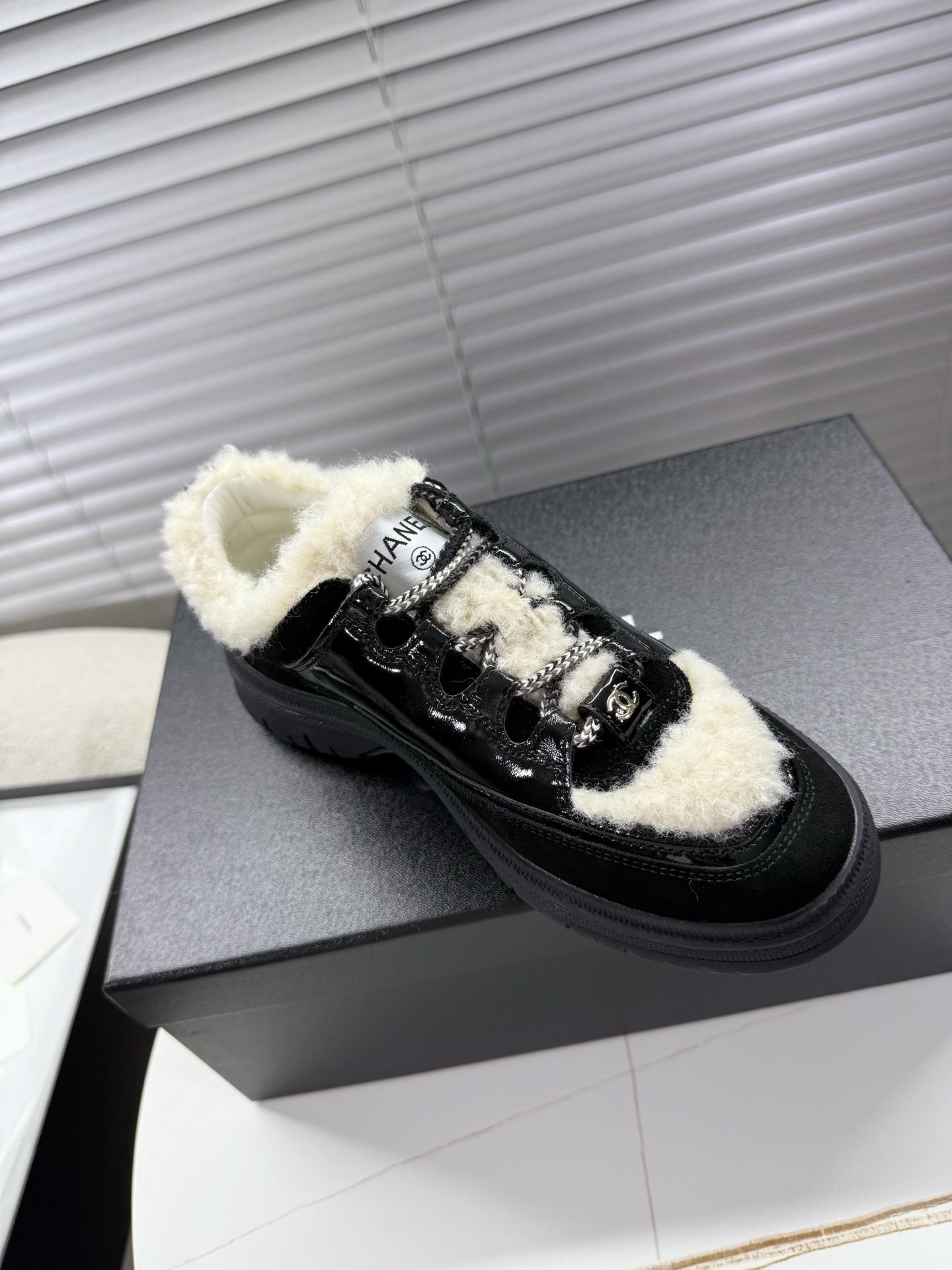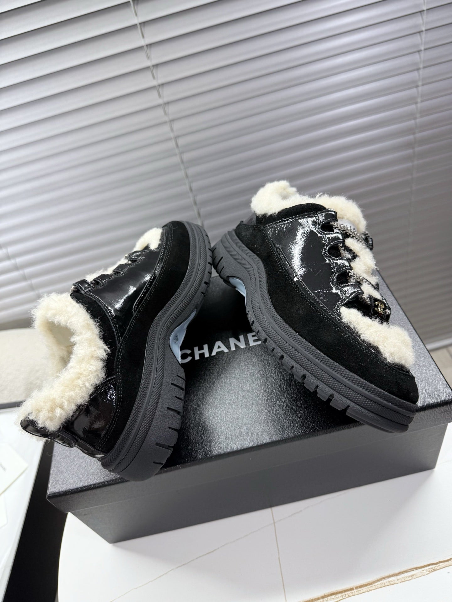 CHANEL 25S SNEAKERS WITH FUR ACCENTS 35MM IN BLACK CALFSKIN