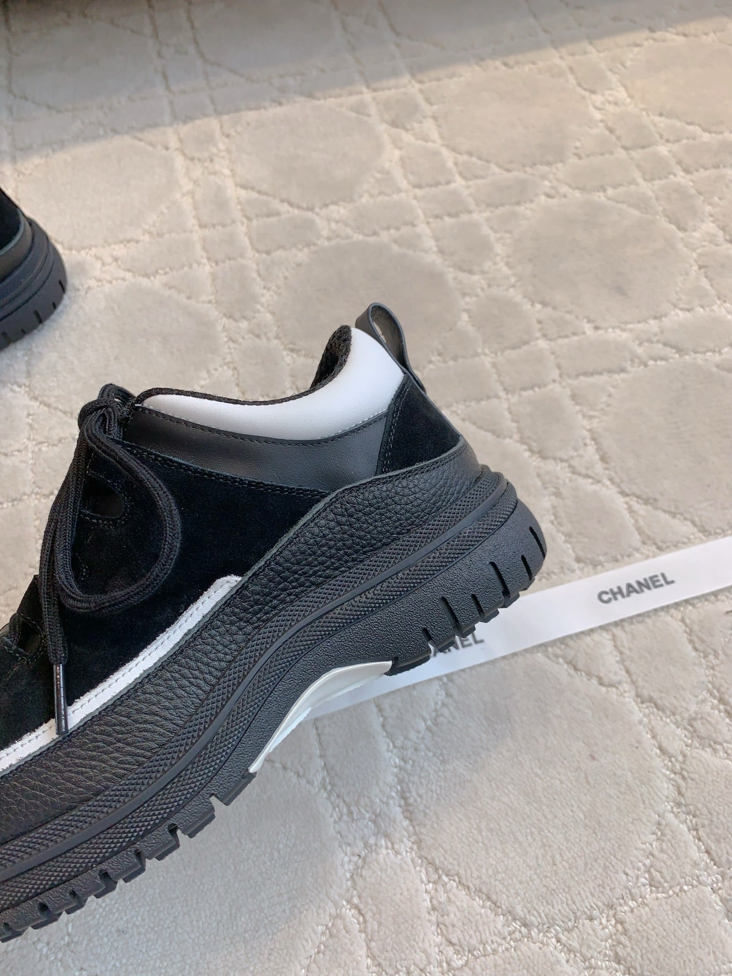 CHANEL 25S TRAINERS 40MM IN BLACK AND WHITE CALFSKIN AND SUEDE