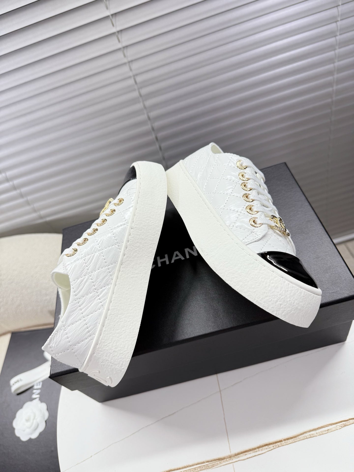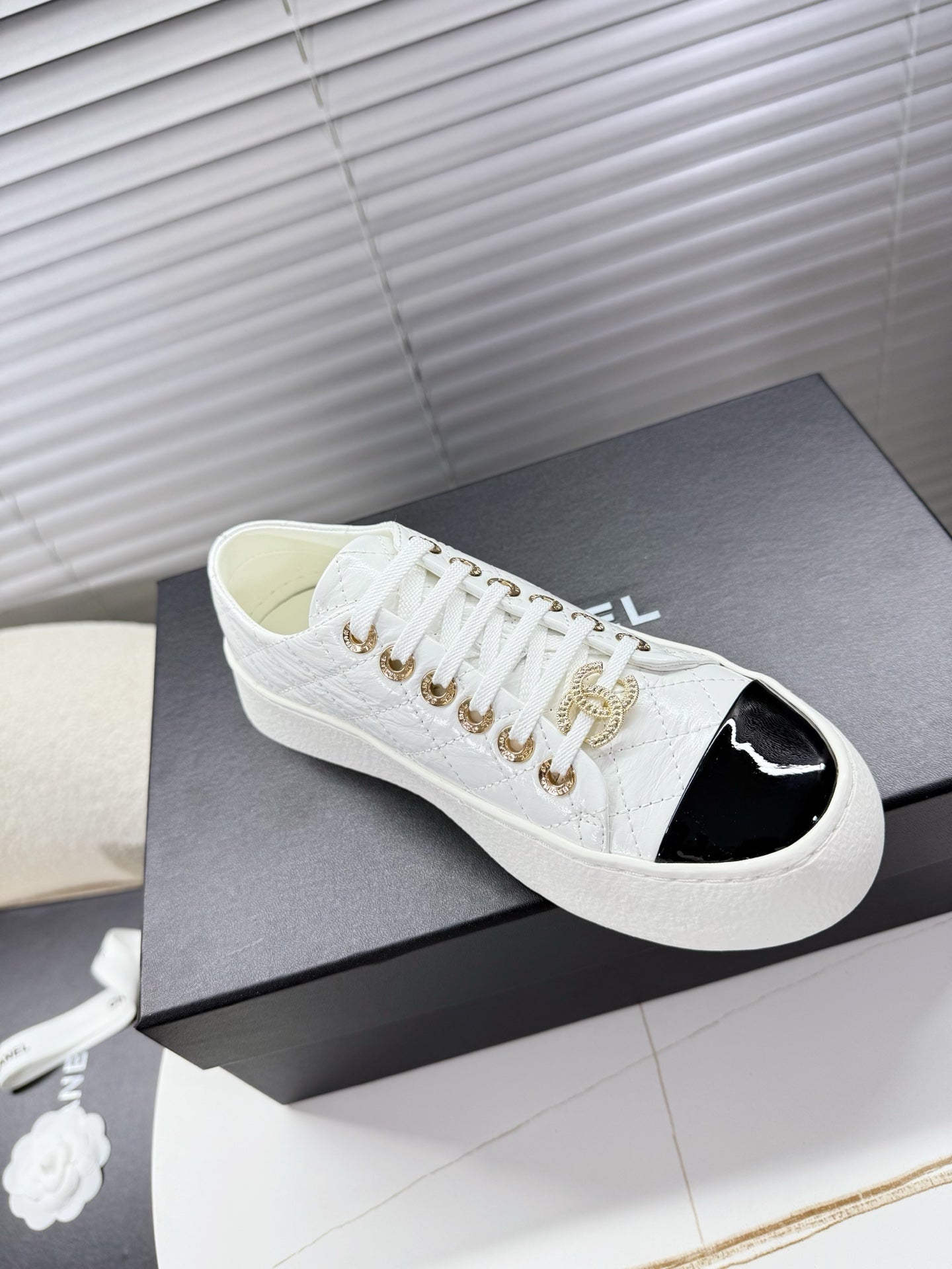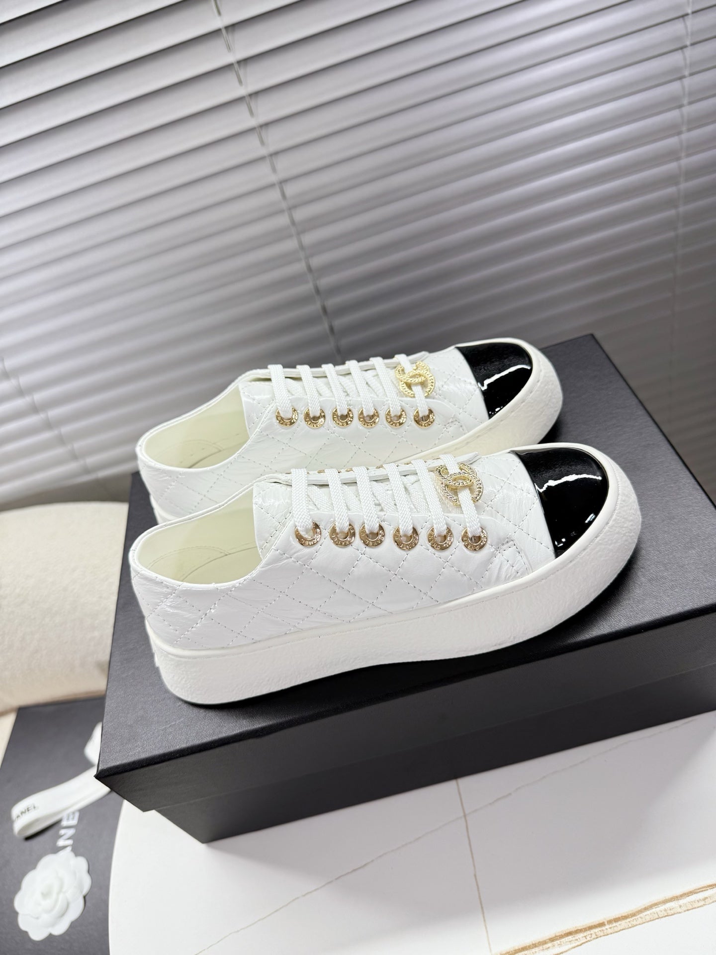 CHANEL 25S TRAINERS WHITE AND BLACK 35MM IN CALFSKIN
