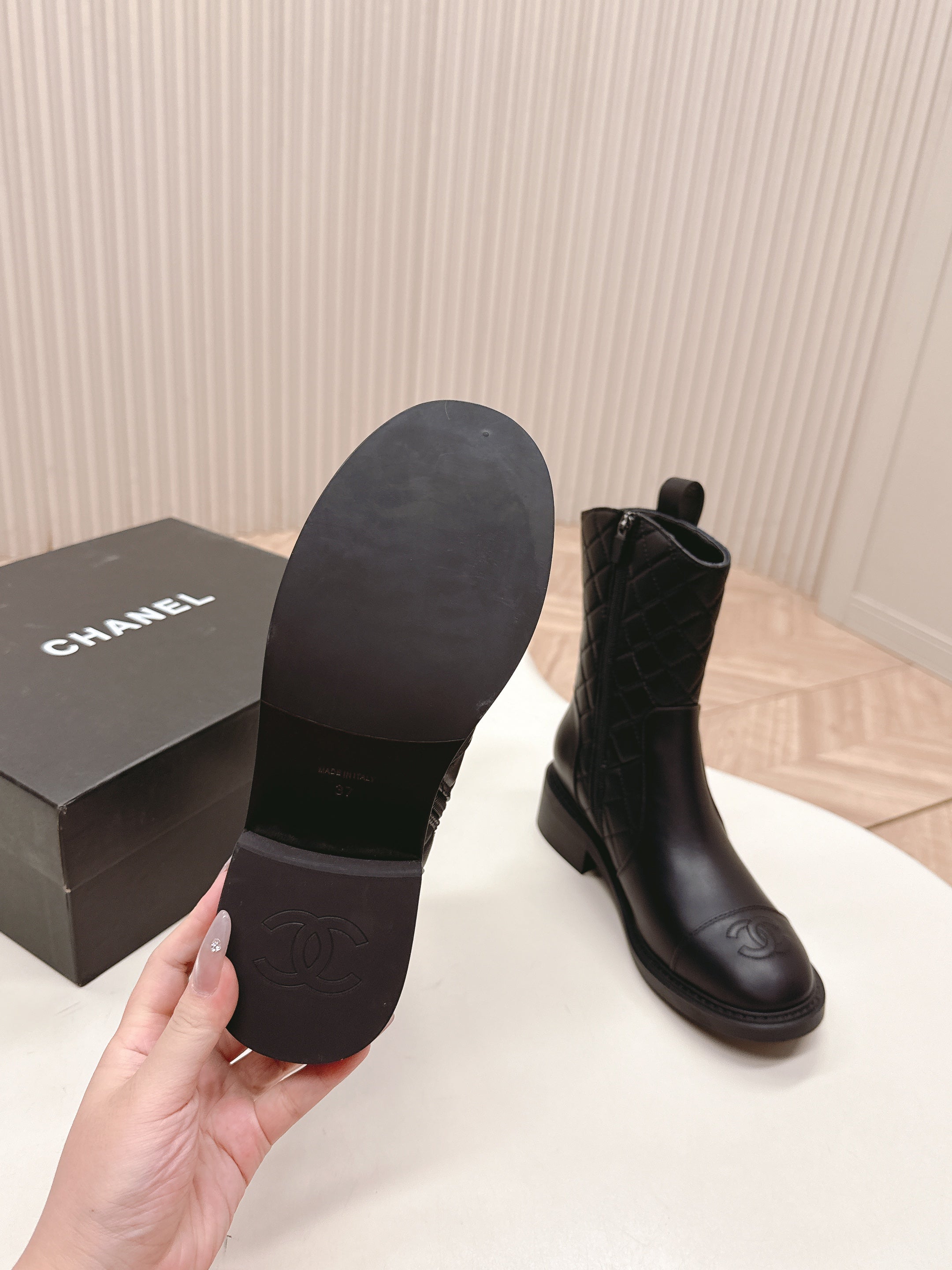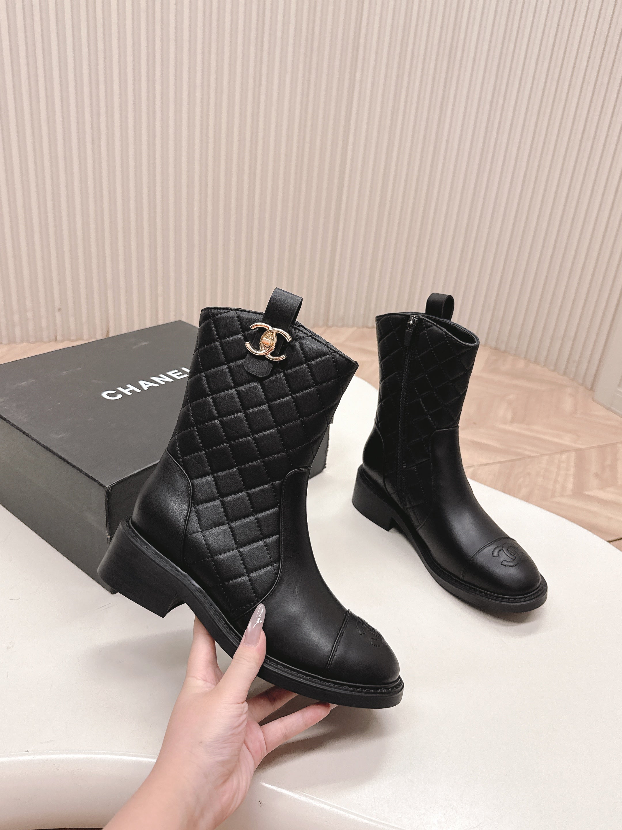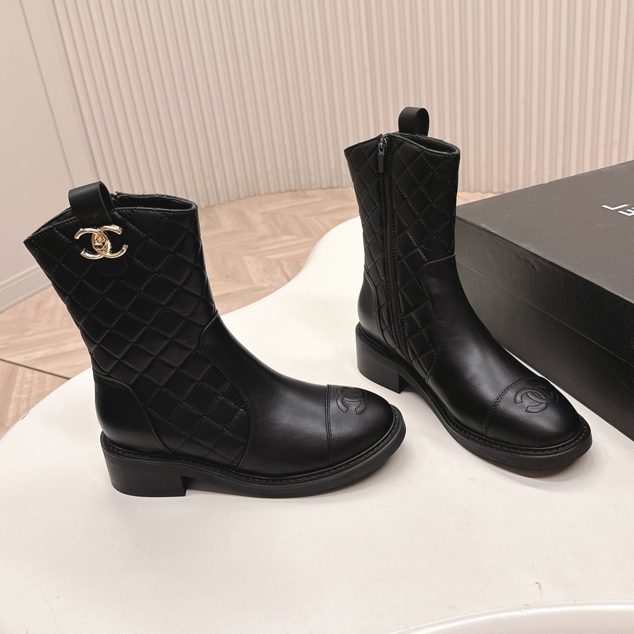 CHANEL ANKLE BOOTS 25S IN BLACK LAMBSKIN WITH GOLD HARDWARE