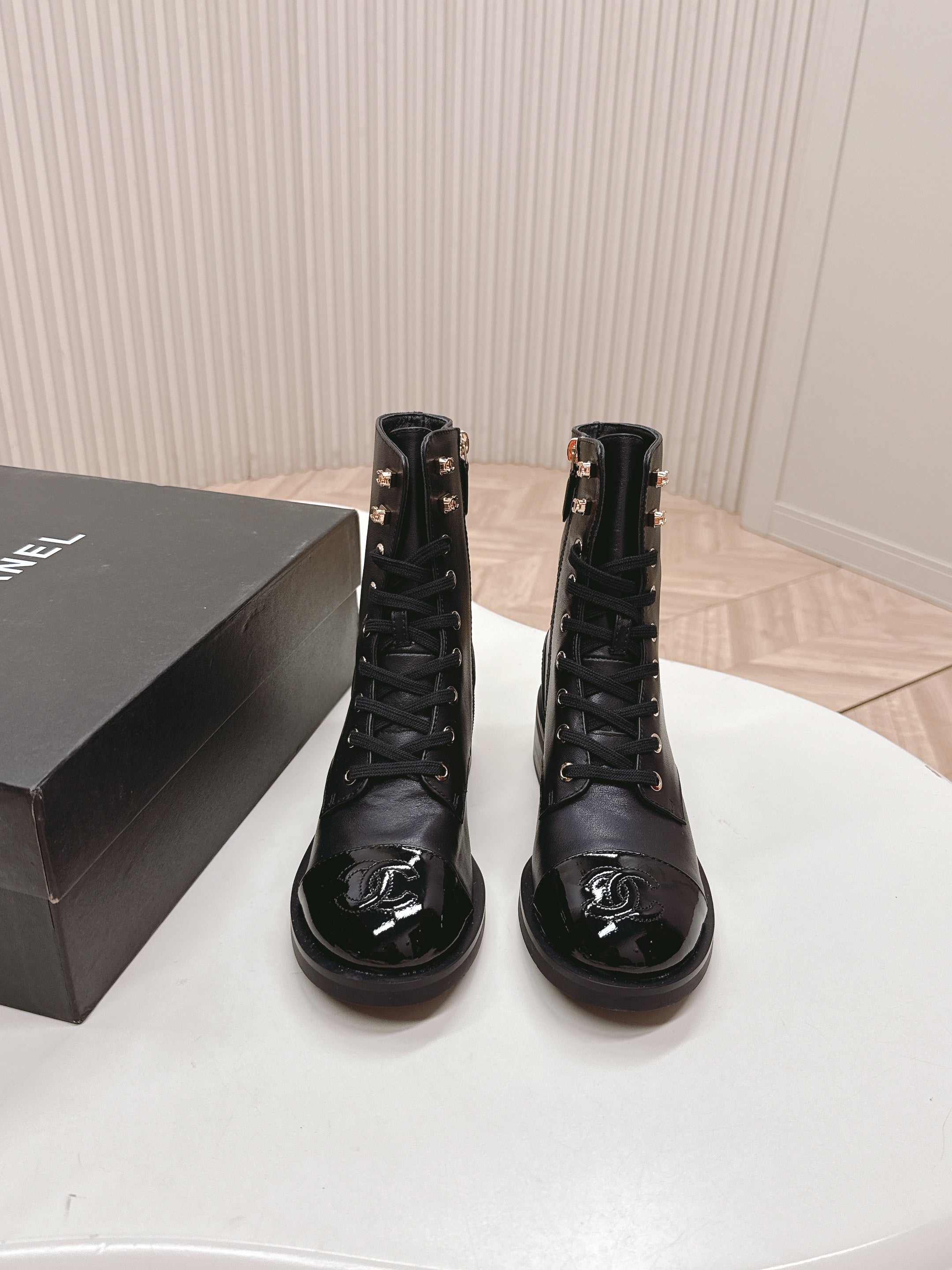 CHANEL ANKLE BOOTS 25S IN BLACK LAMBSKIN WITH ZIPPER