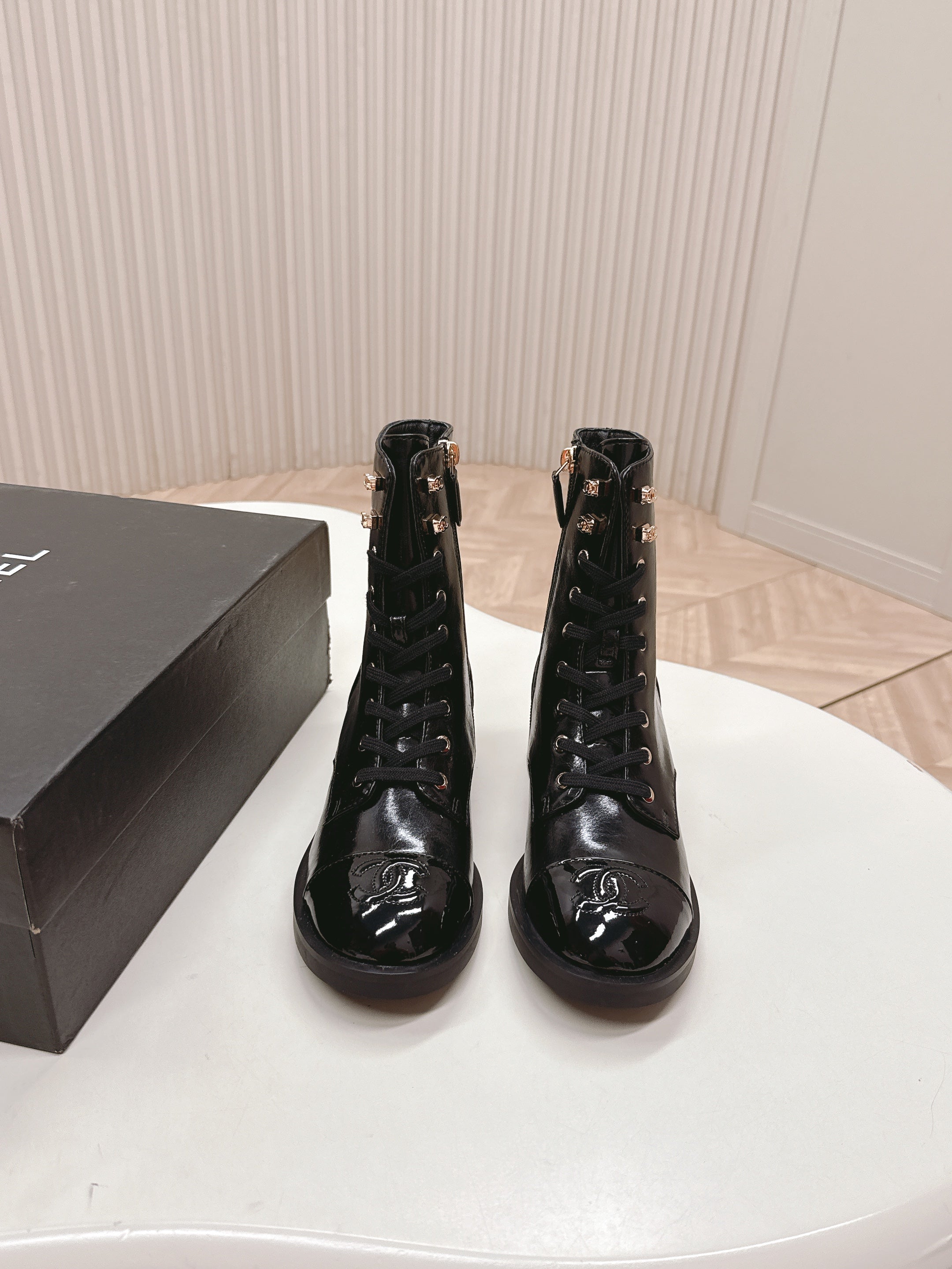 CHANEL ANKLE BOOTS 25S IN BLACK SHINY LAMBSKIN WITH ZIPPER