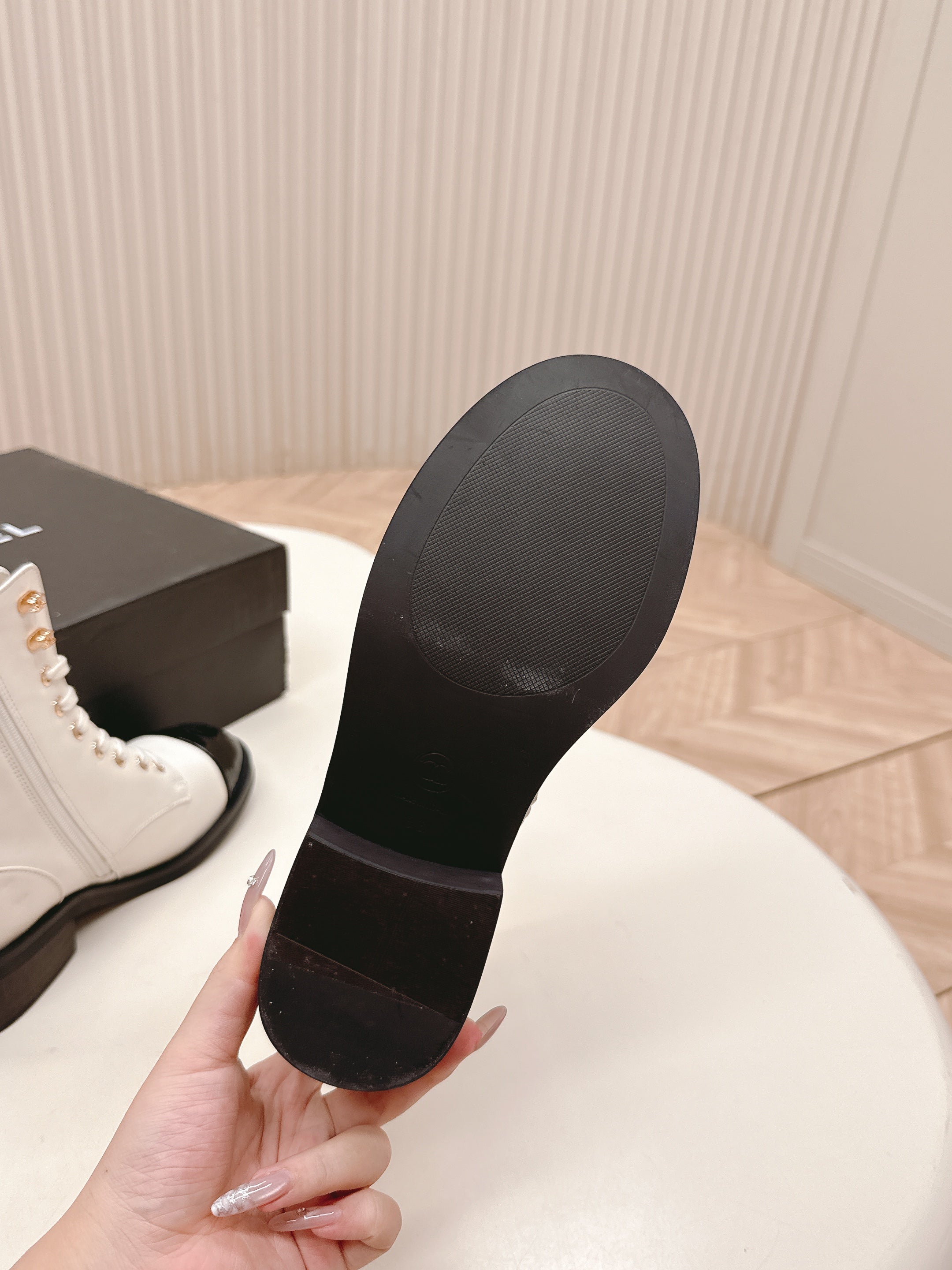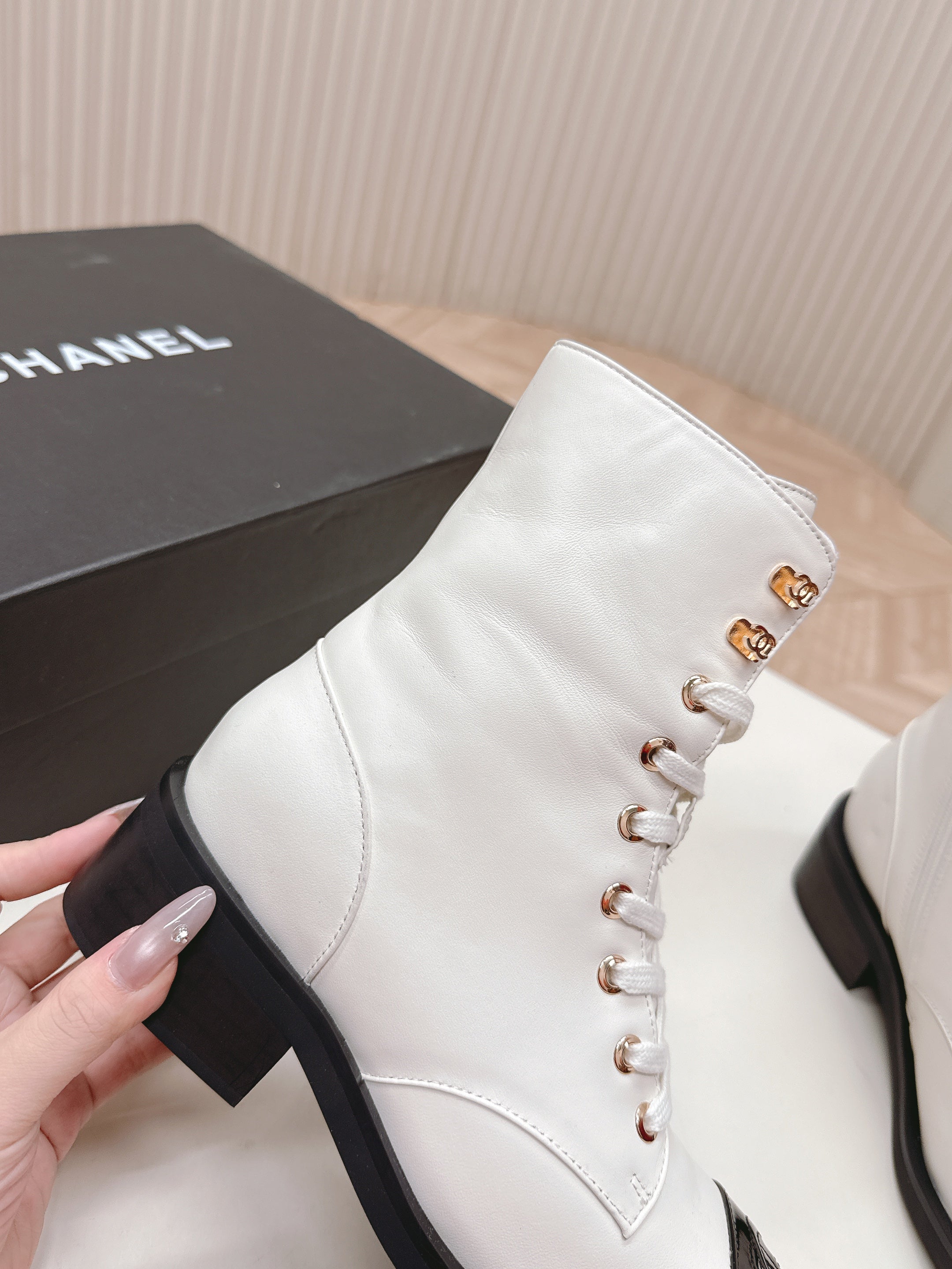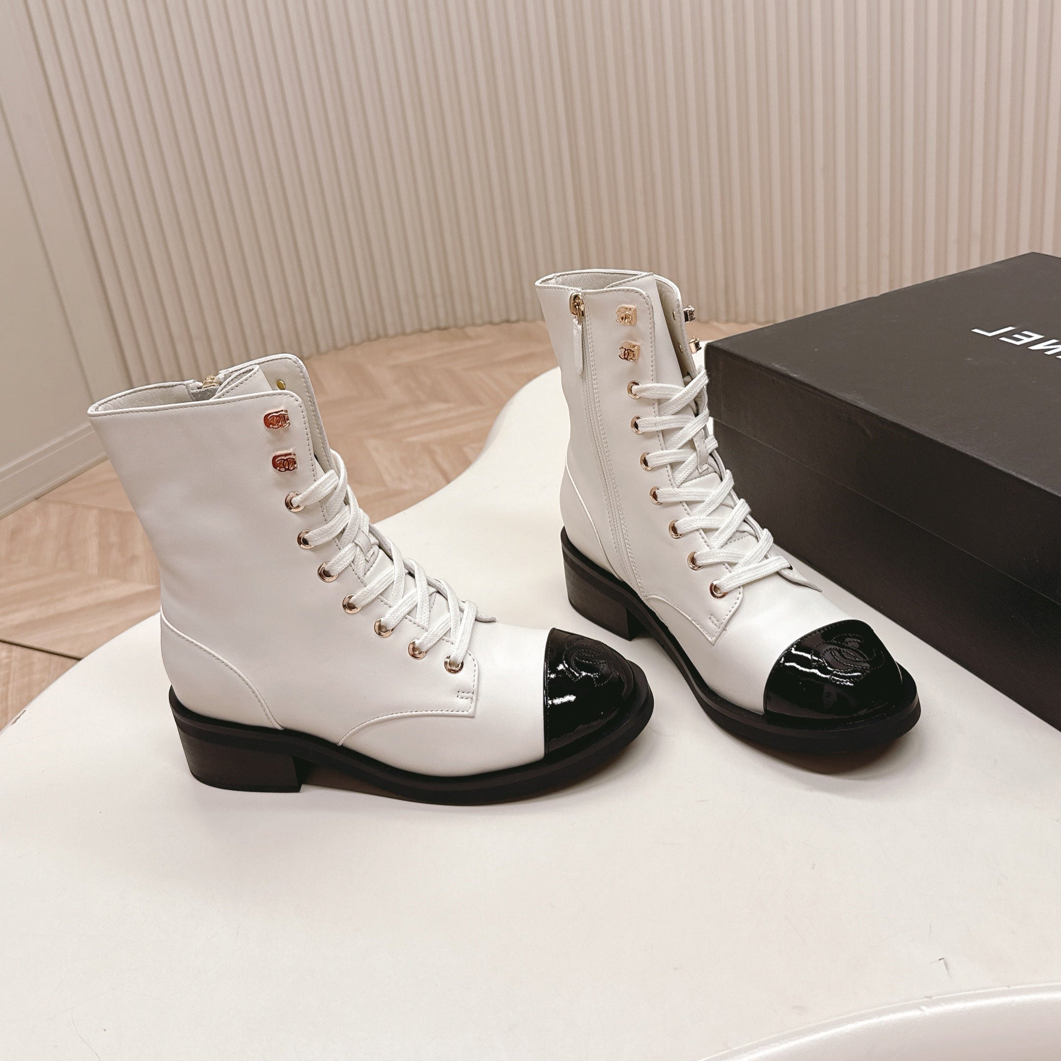 CHANEL ANKLE BOOTS 25S IN WHITE MIX BLACK LAMBSKIN WITH ZIPPER