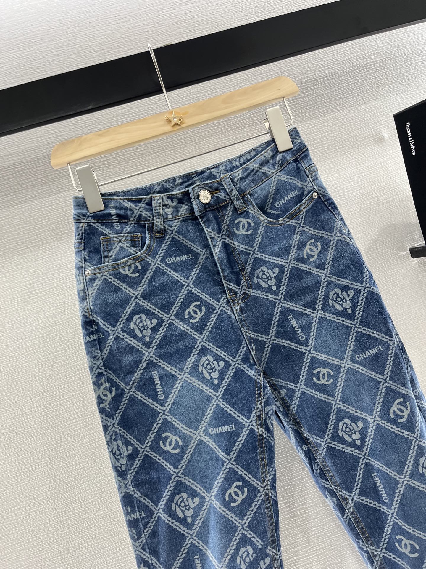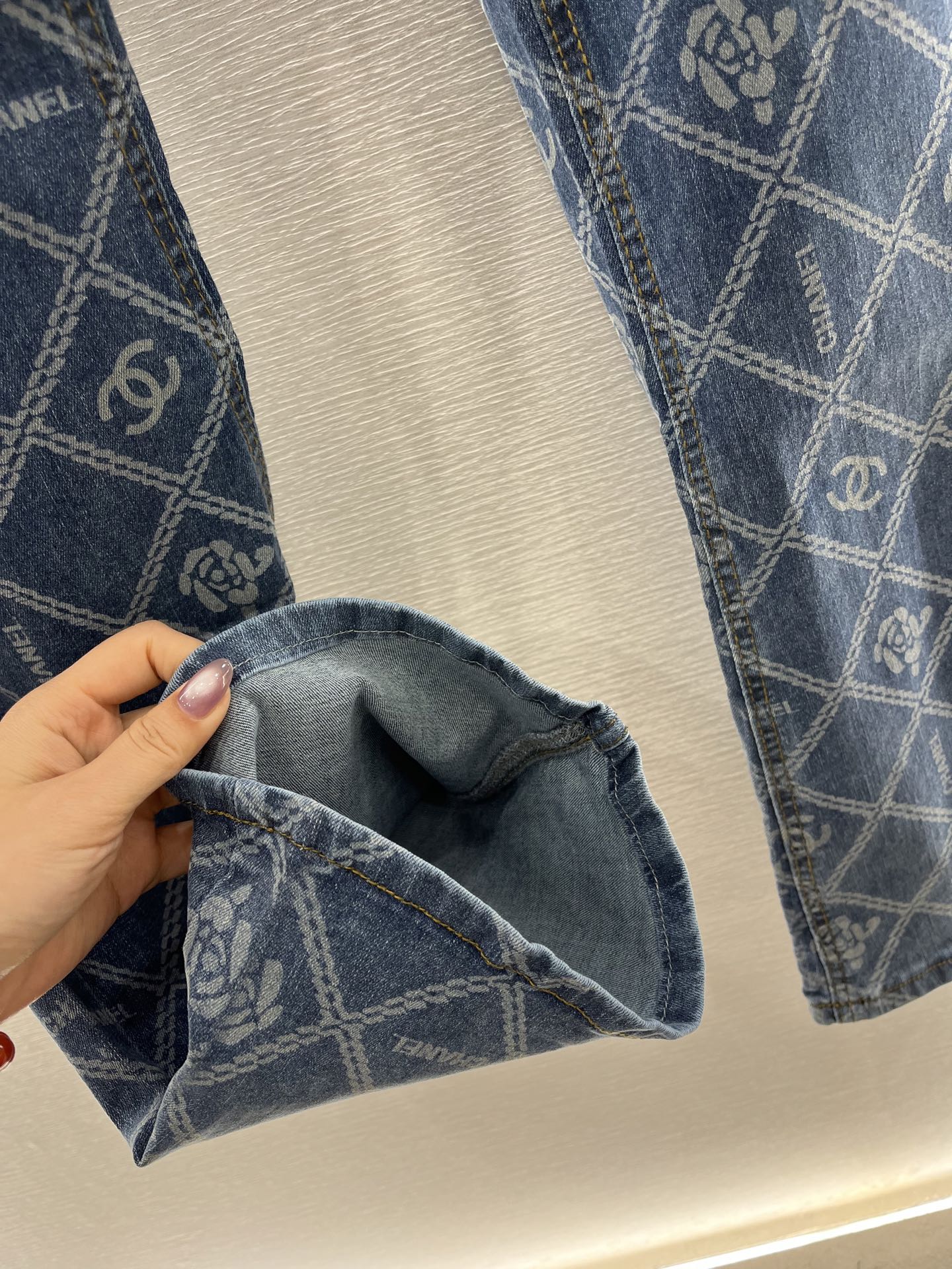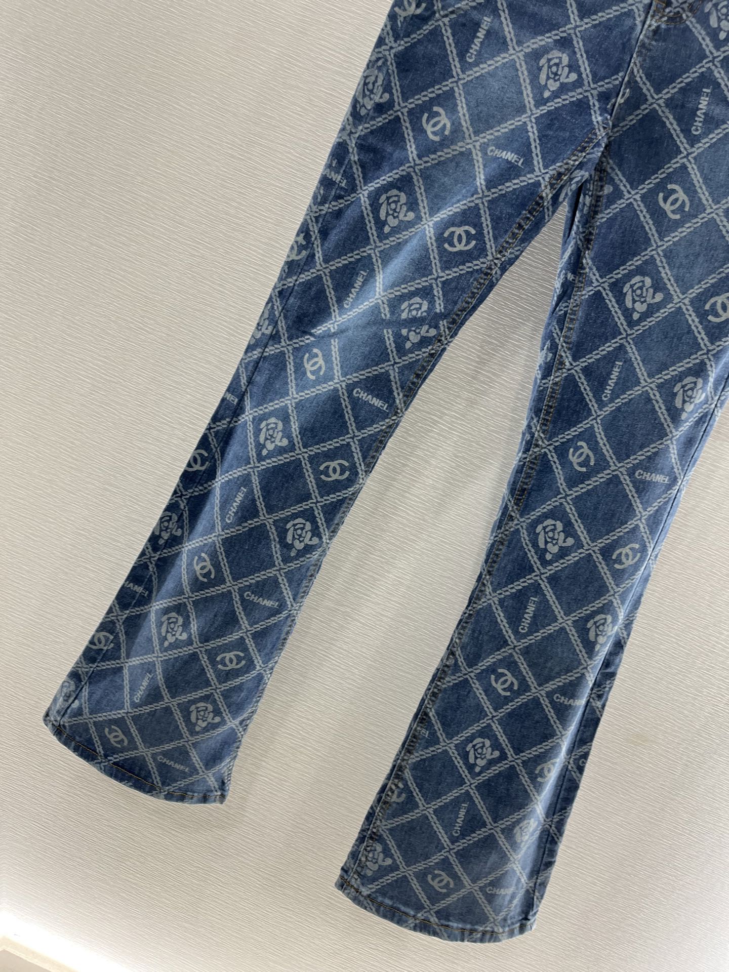 CHANEL FLARED JEANS WITH LOGO PRINT 263984