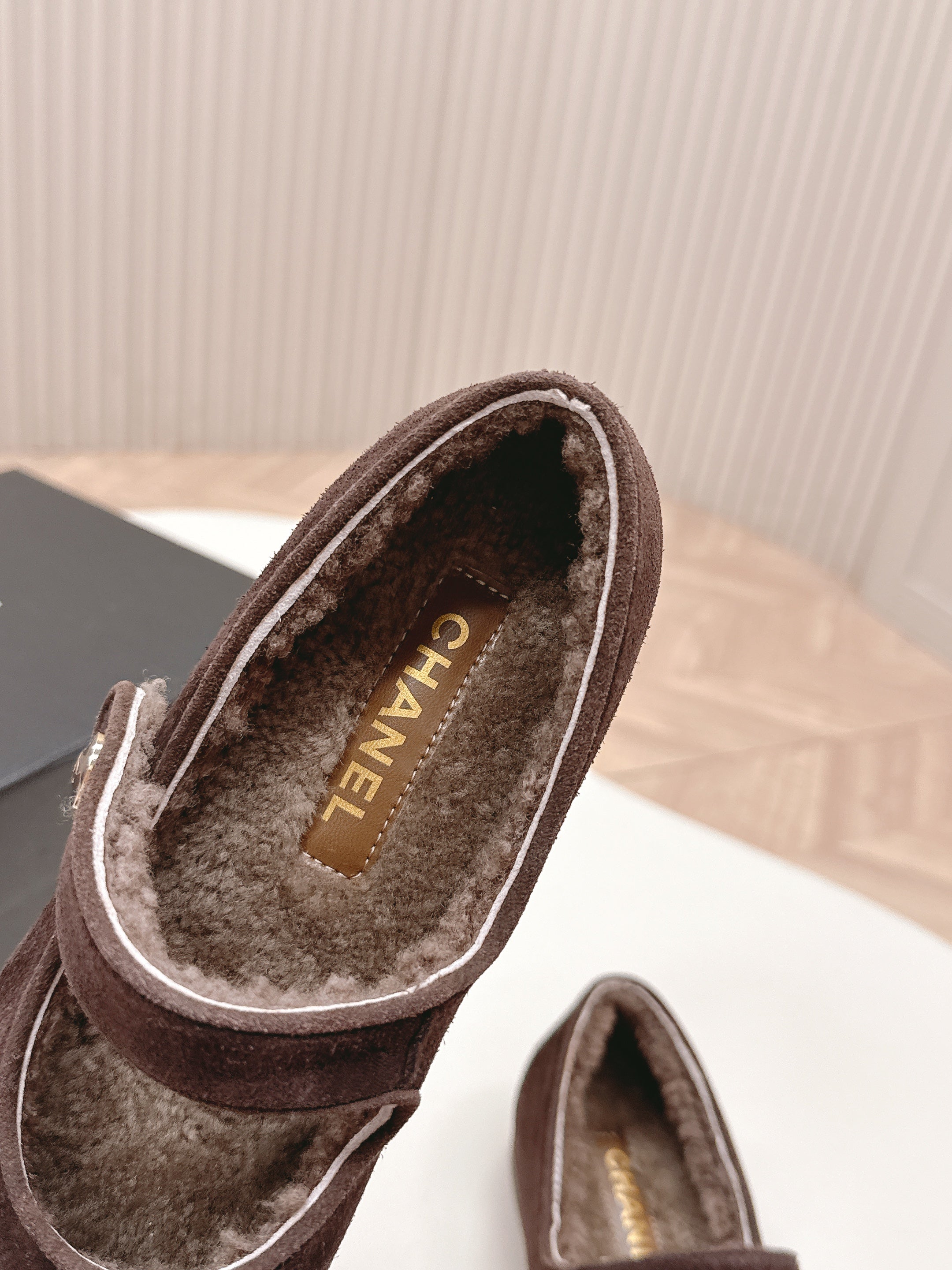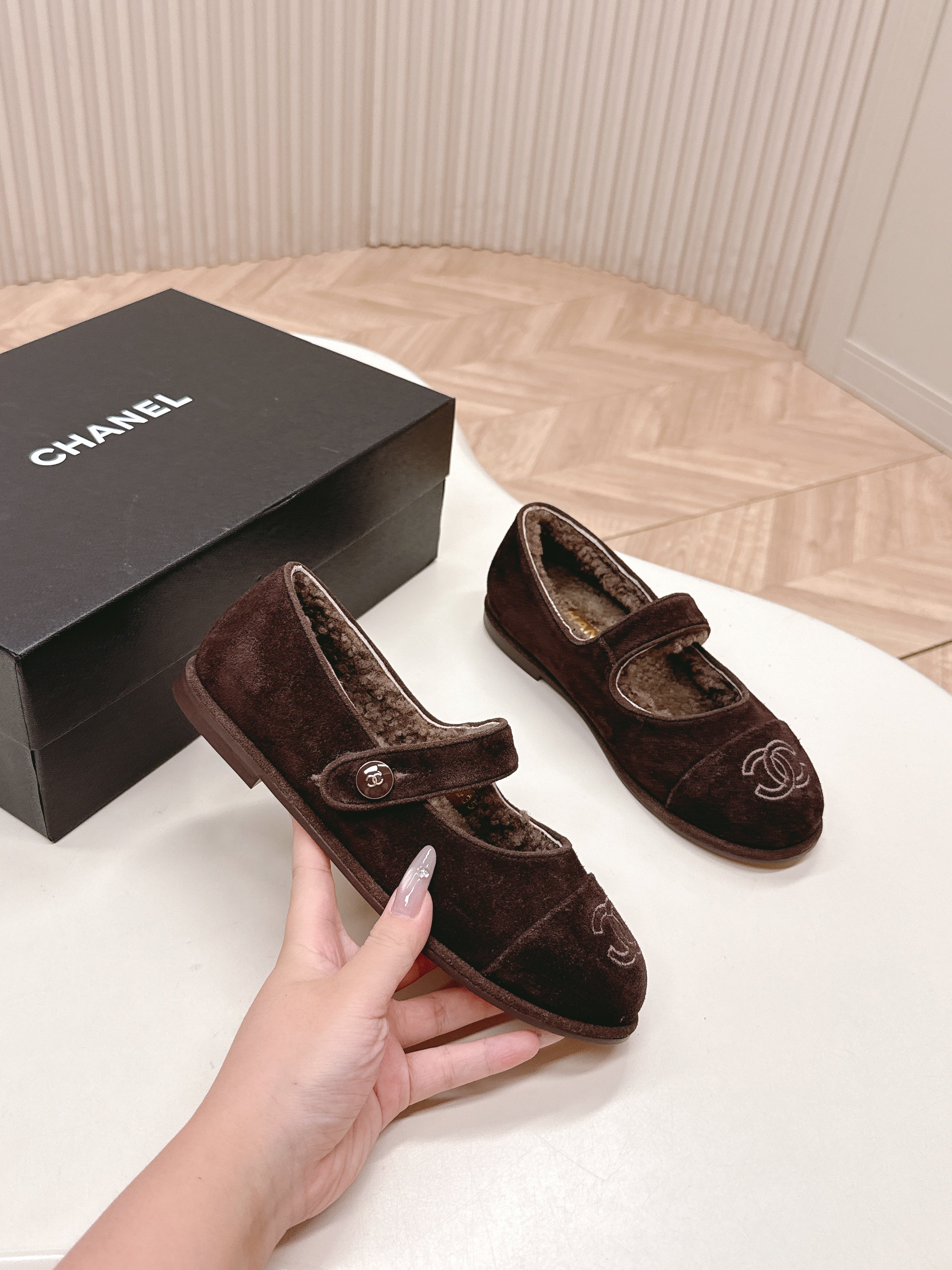 CHANEL FLAT MARY JANE SHOES 25S IN DARK BROWN VELVET