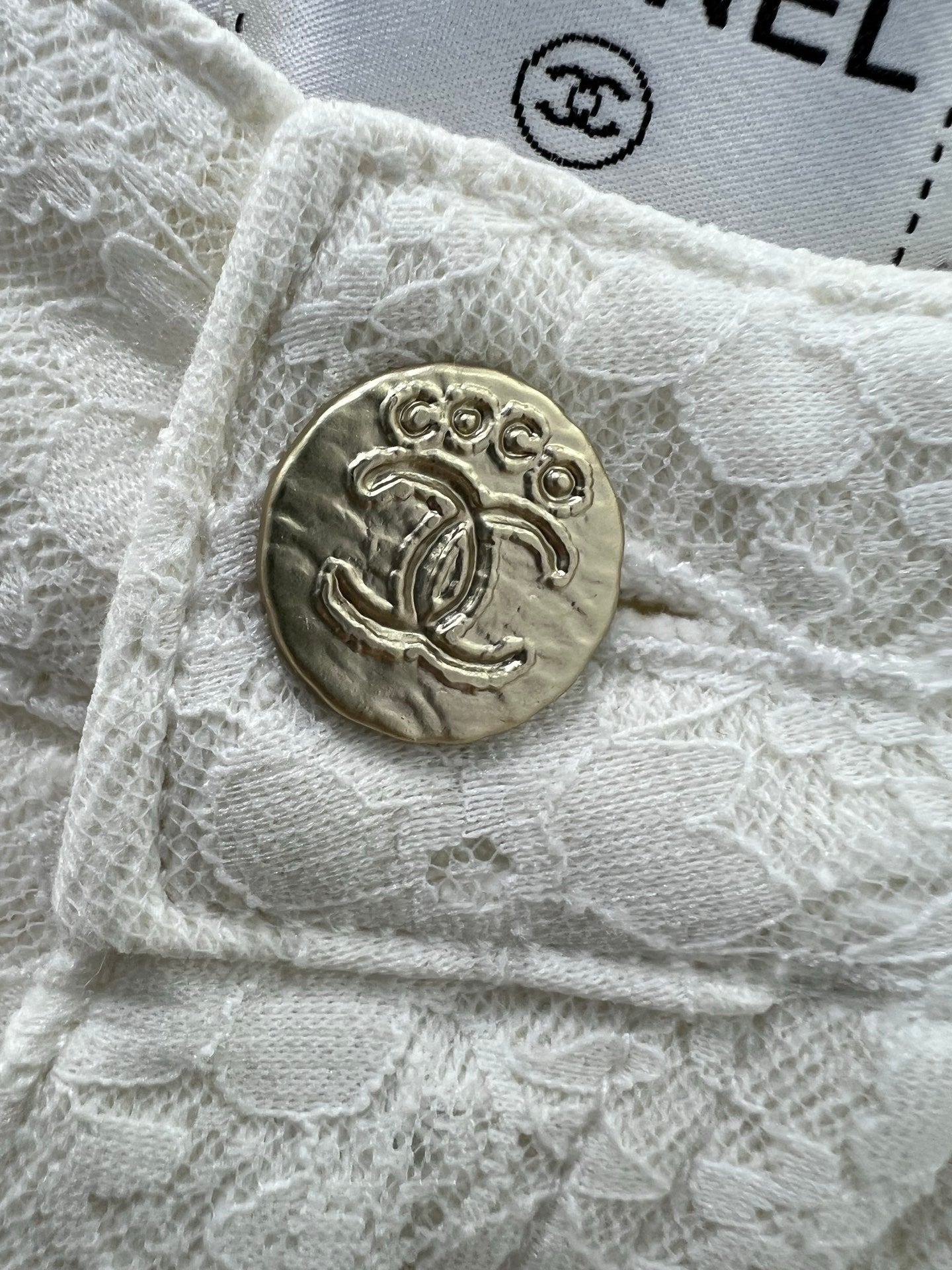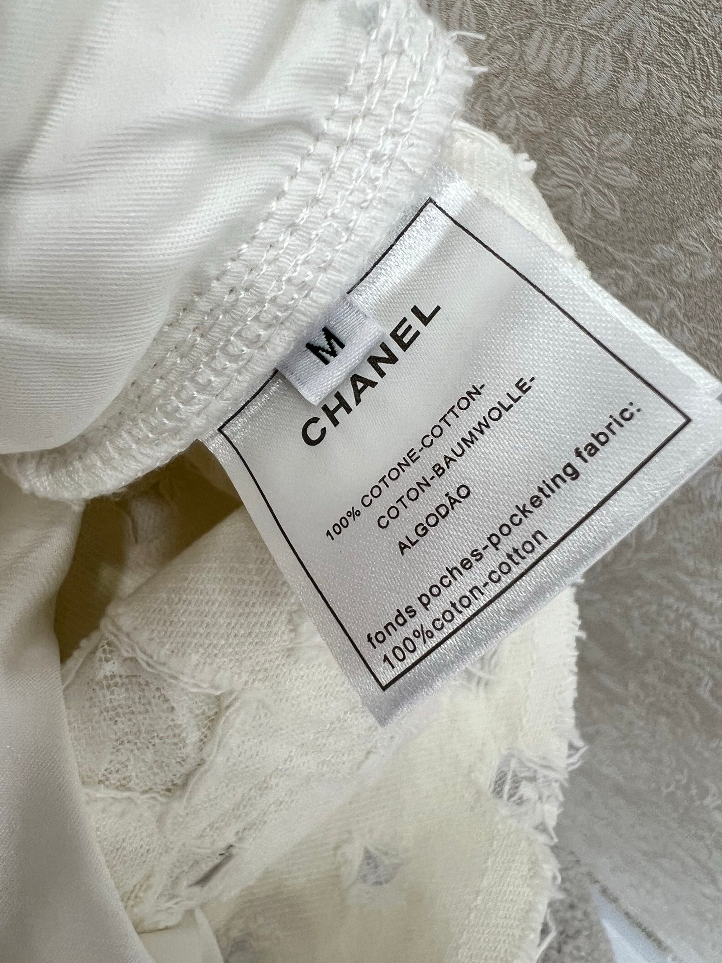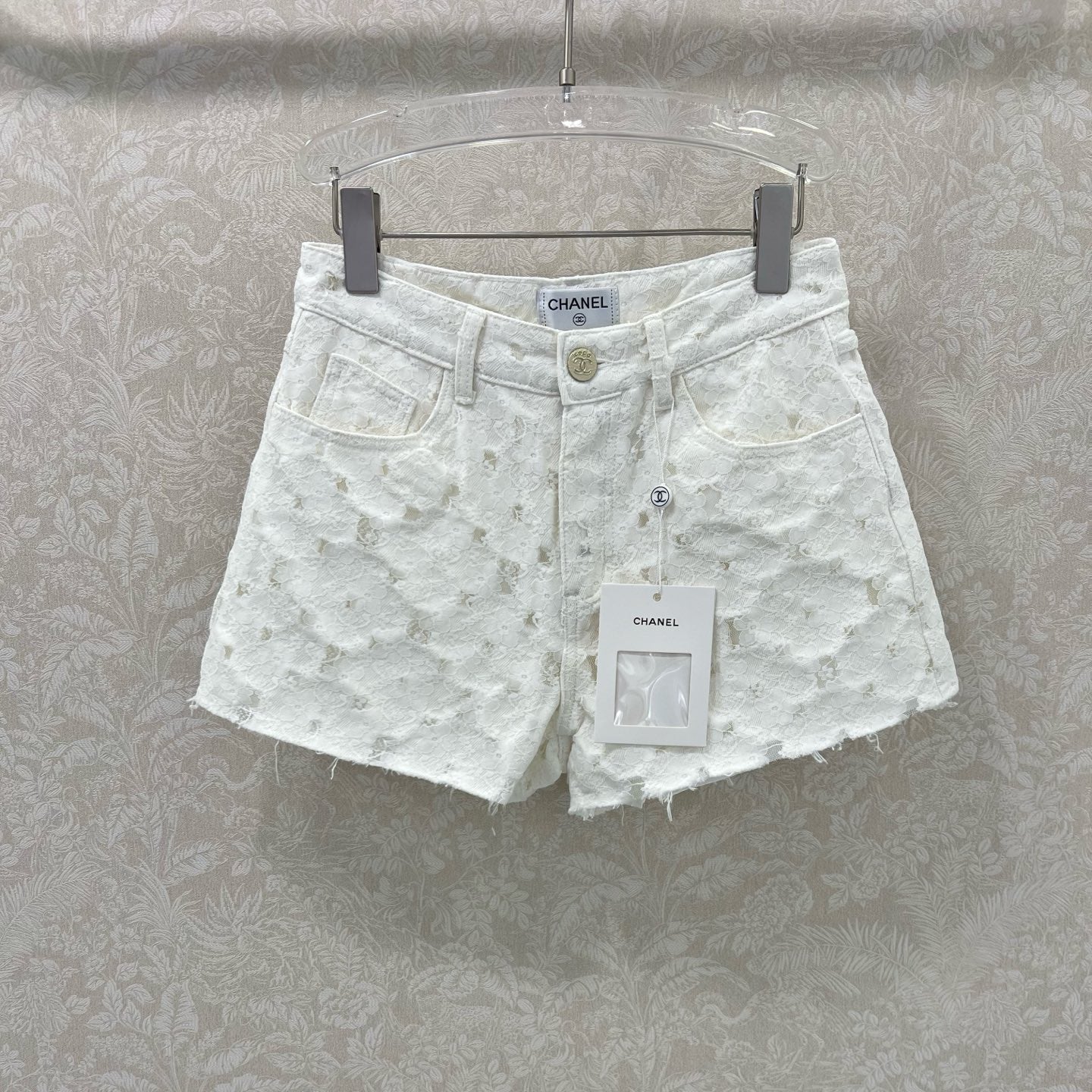 CHANEL LACE-TRIMMED DENIM SHORTS 275066
