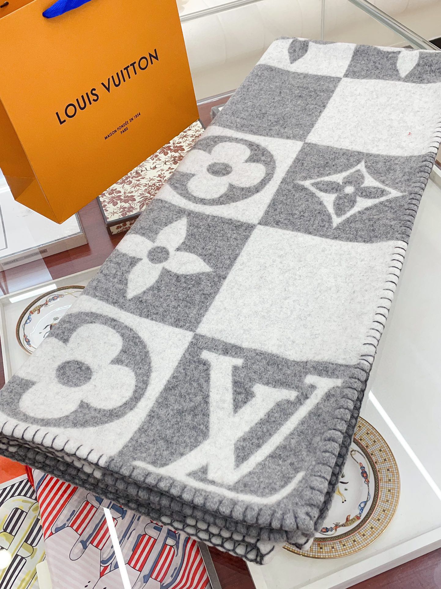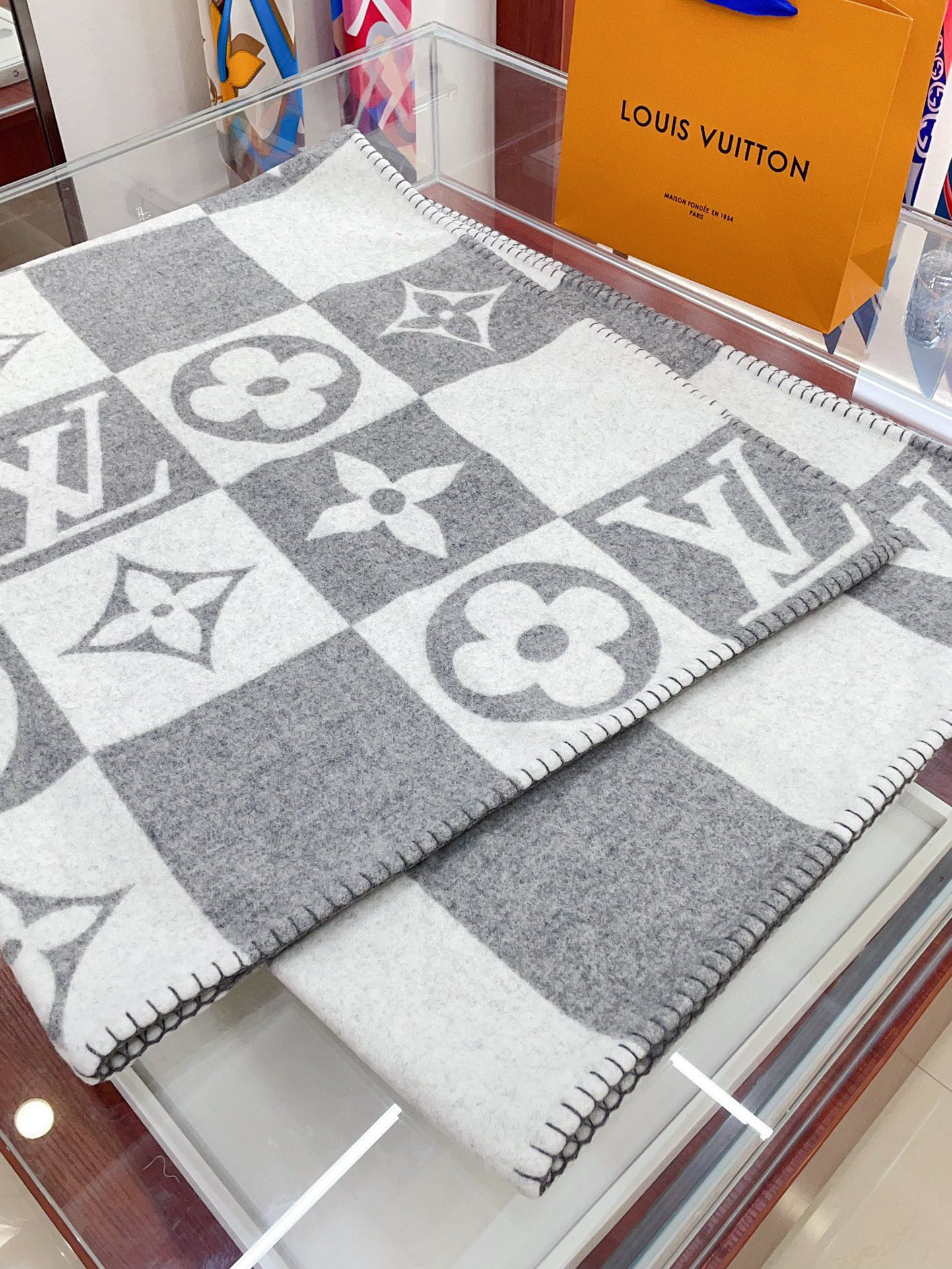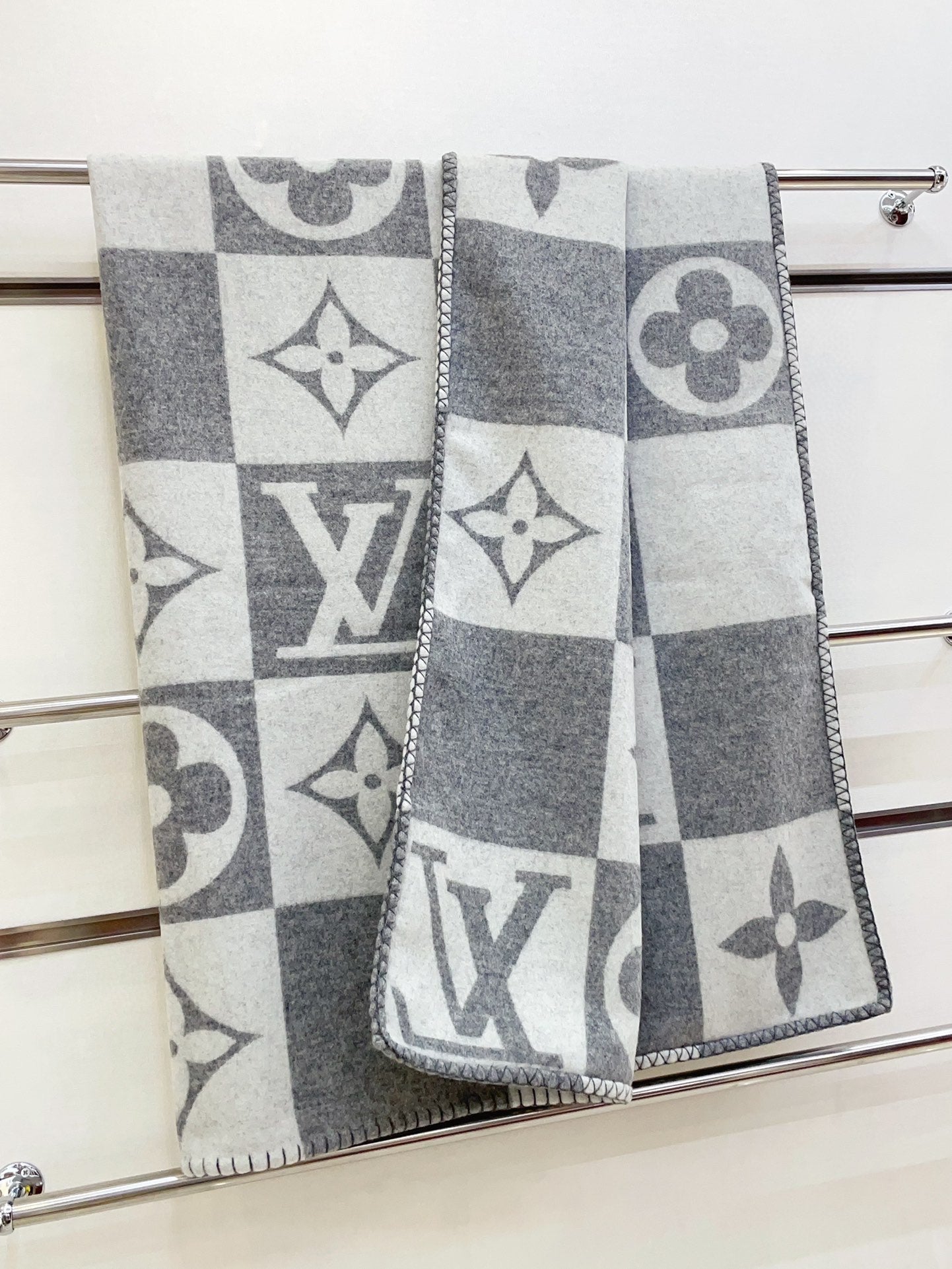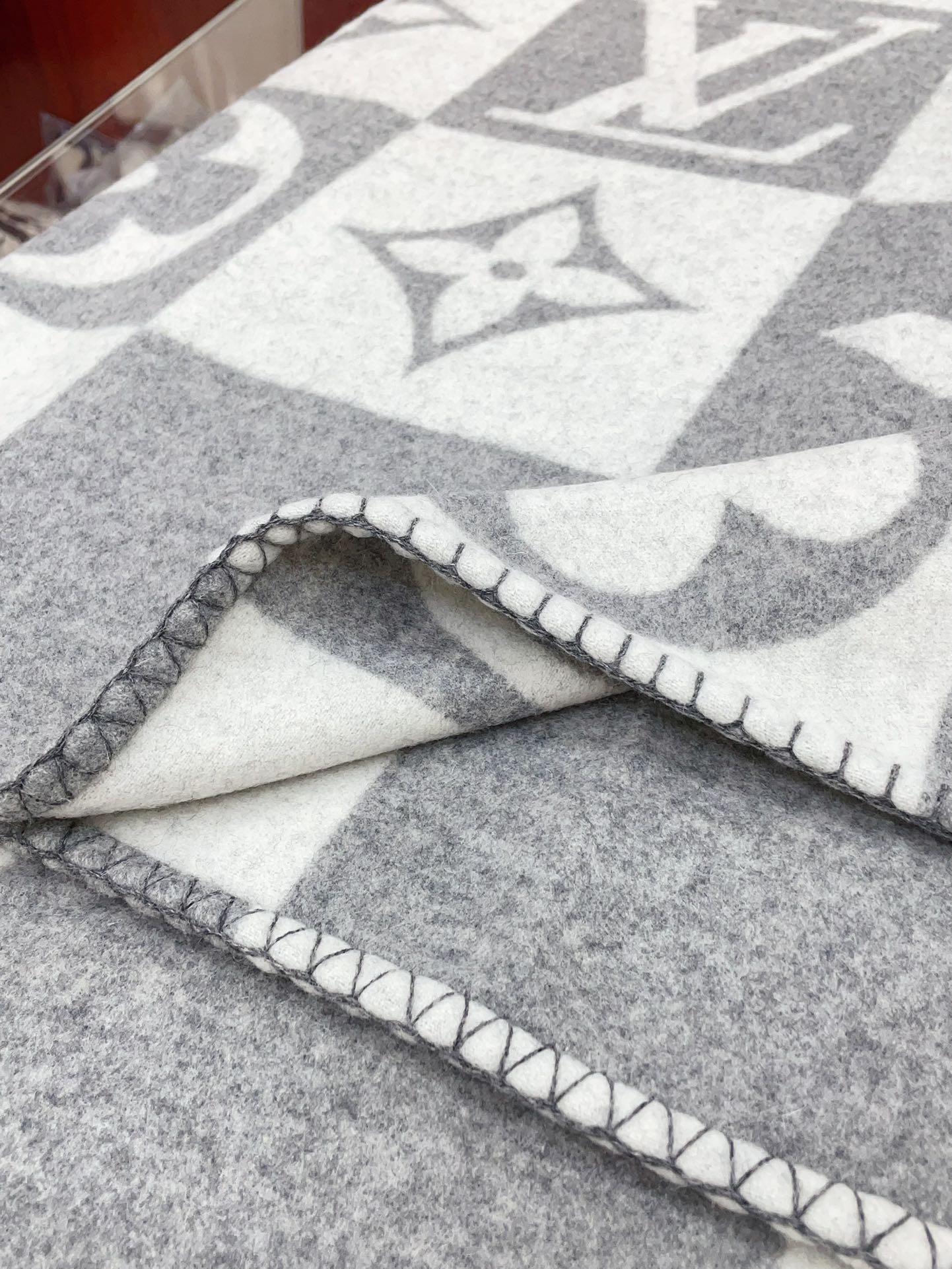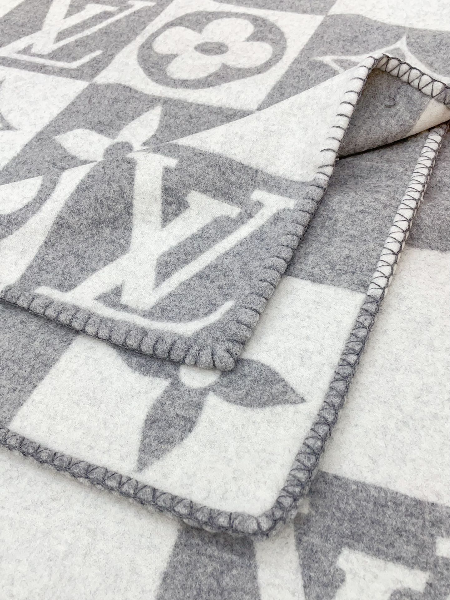 CHECKMATE BLANKET 180 CM IN WHITE MIX LIGHT GRAY WOOL AND CASHMERE 403904