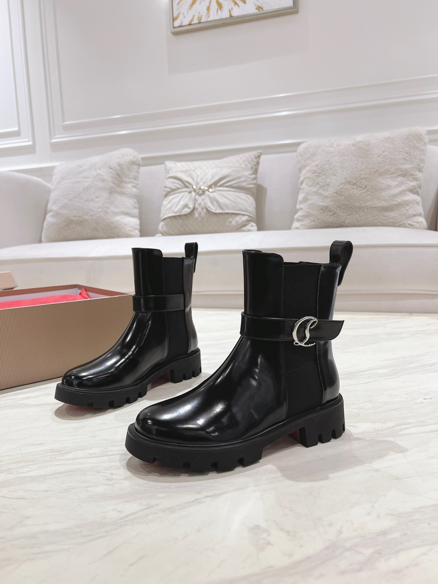 CHELSEA BOOT LUG 30MM IN BLACK GLOSSY CALFSKIN