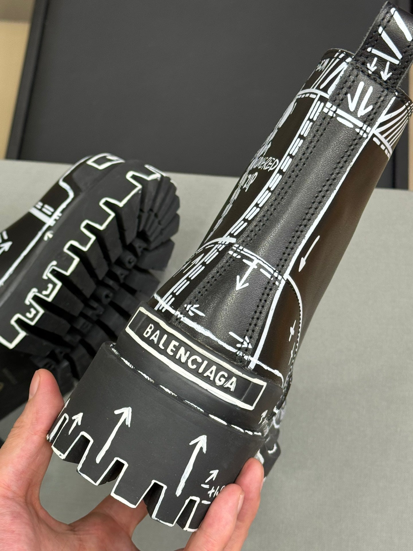 CHUNKY BOOTS IN BLACK SMOOTH CALFSKIN WHITE PRINT