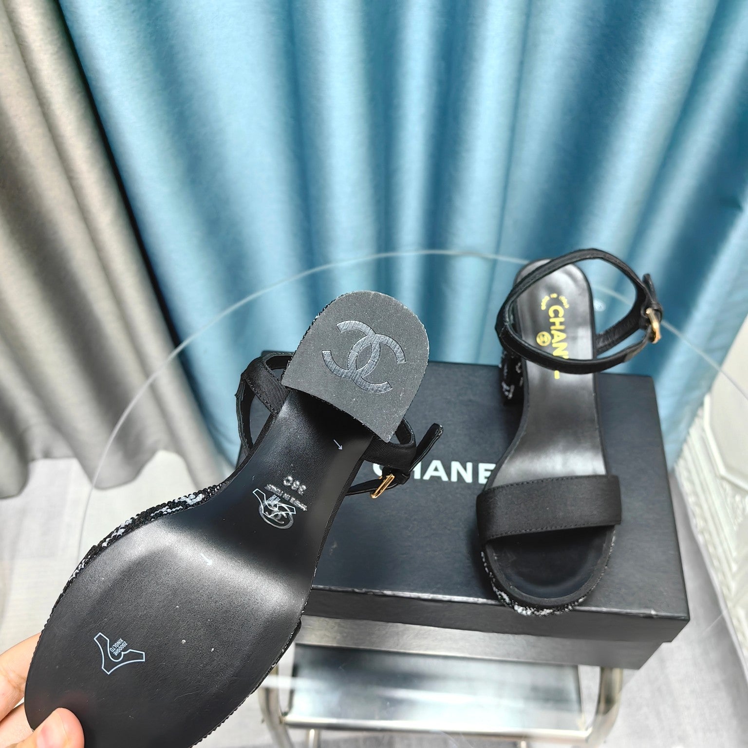 Chunky Heel Rhinestone High Sandals Black Lambskin